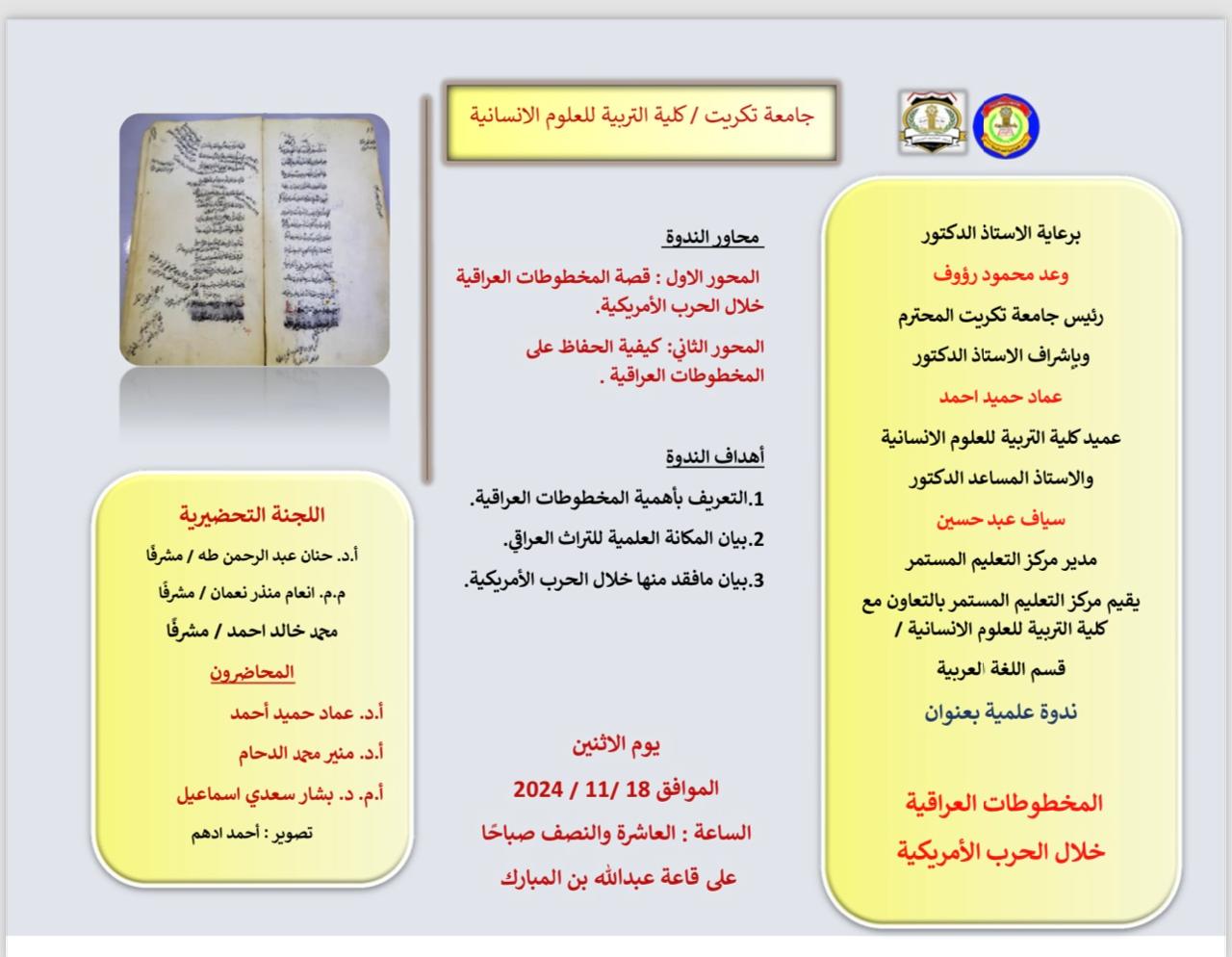 ندوة علمية بعنوان المخطوطات العراقية خلال الحرب الامريكية