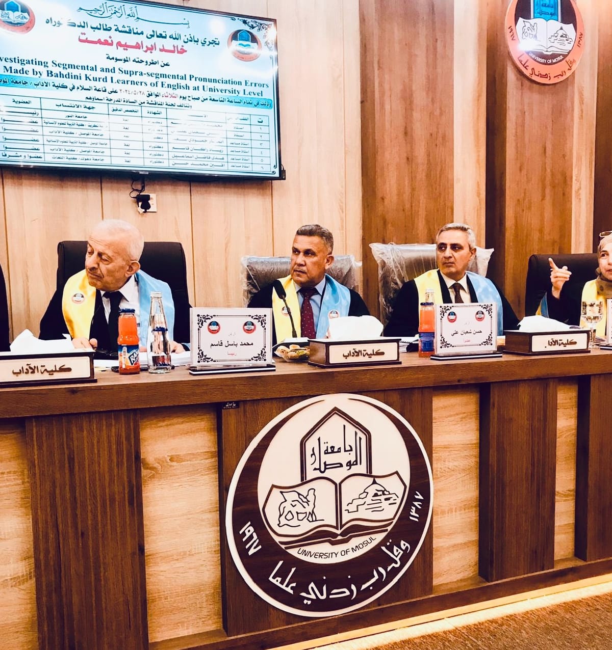 شارك السيد رئيس قسم اللغة الانكليزية في كلية التربية للعلوم الانسانية الاستاذ الدكتور حسن شعبان في عضوية لجنة مناقشة اطروحة دكتوراه في جامعة الموصل – كلية الآداب للطالب (خالد إبراهيم نعمت) عن أطروحته الموسومة بـ (Investigating Segmental and Supra-segmental Pronunciation Errors Made by Bahdini Kurd Learners of English at University Level ) اذ تثمن عمادة كلية التربية للعلوم الانسانية متمثلة بالسيد عميد الكلية الاستاذ الدكتور عماد حميد احمد جهود اساتيذها في رفع اسم كليتنا من خلال المشاركة بهكذا نشاطات علمية مثمرة .