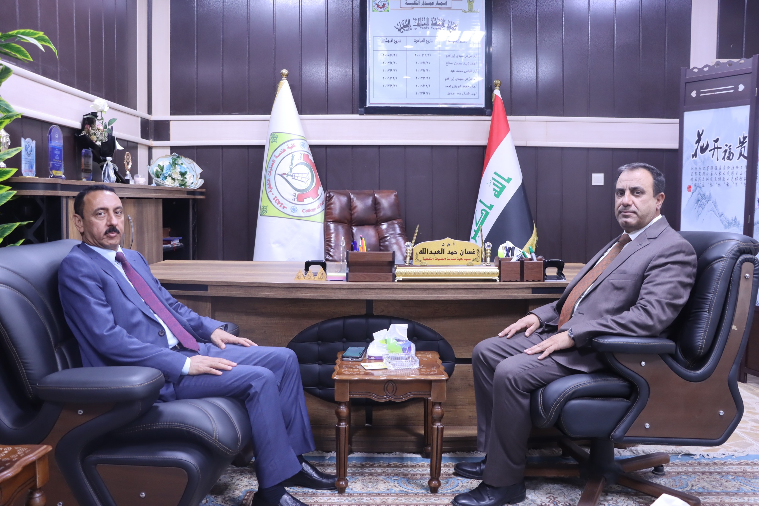 زارَ السيد عميد كلية التربية للعلوم الإنسانية الاستاذ الدكتور عماد حميد احمد اليوم الأربعاء الموافق (٢٠٢٥/١٠/١) كلية هندسة العمليات النفطية وكان في استقباله السيد عميد الكلية الاستاذ المساعد الدكتور غسان حمد عبدالله ، وجرى خلال اللقاء تبادل الأحاديث حول تعزيز أواصر التعاون العلمي بين الكليتين، ومناقشة جملة من الموضوعات المتعلقة بالشؤون الأكاديمية والإدارية، فضلاً عن استعراض الخطط المستقبلية التي من شأنها الإسهام في تطوير البيئة الجامعية وخدمة الطلبة ، وفتح آفاق للتعاون المشترك في إقامة المؤتمرات والندوات العلمية وورش العمل.
