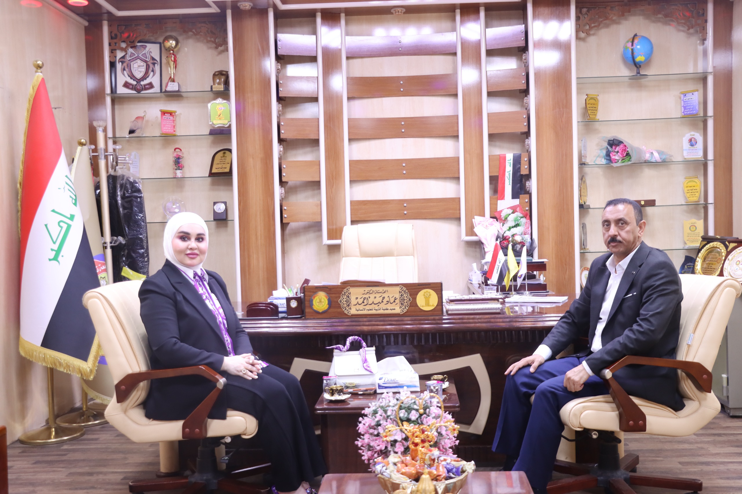استقبل السيد عميد كلية التربية للعلوم الإنسانية الأستاذ الدكتور عماد حميد أحمد، اليوم الاثنين الموافق (٢٠٢٥/٩/٢٩)، النائب في البرلمان العراقي عن محافظة صلاح الدين الدكتورة هند محمد العباسي.