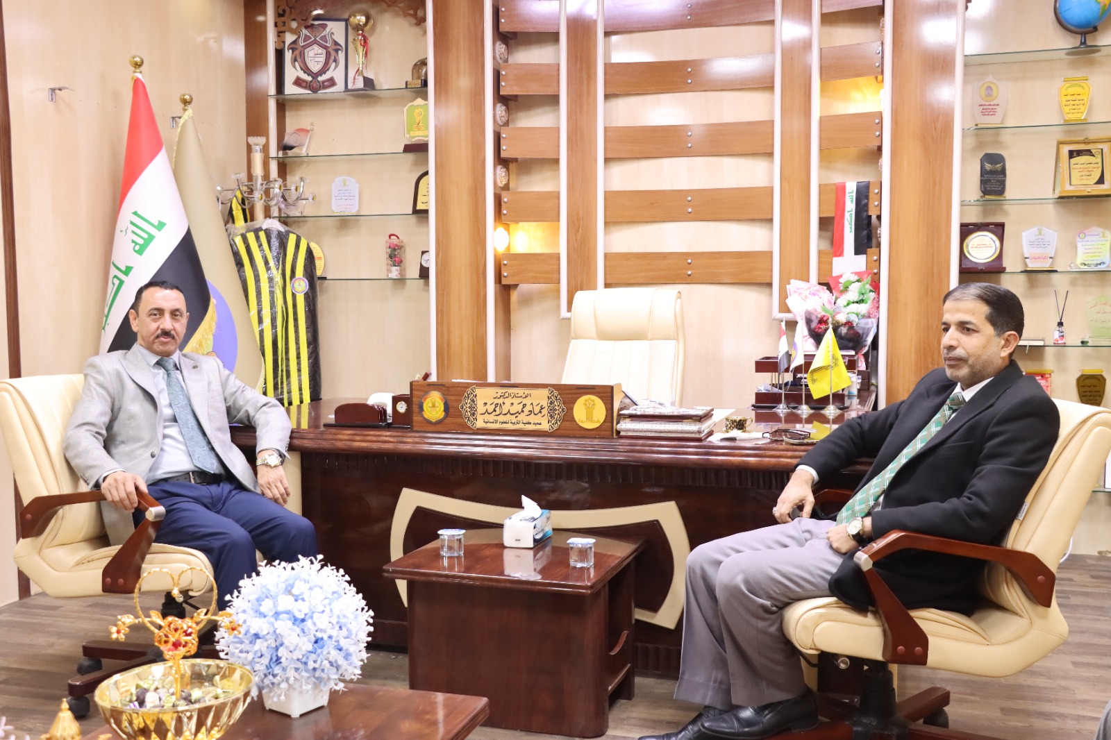 استقبل السيد عميد كلية التربية للعلوم الإنسانية الاستاذ الدكتور عماد حميد احمد اليوم الاثنين الموافق (٢٠٢٥/٢/١٠) السيد عميد كلية العلوم الإسلامية الاستاذ الدكتور انور فارس عبد ، ودار الحديث بينهما وناقشا امور عدة تخص المصلحة العامة والعمل على سبل تطوير آفاق التعاون العلمي والأكاديمي بين الكليات في جامعة تكريت . راجين للجميع الموفقية والسداد في مسيرتهم العلمية.