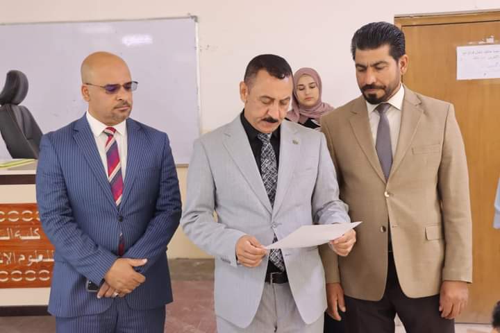السيد عميد كلية التربية للعلوم الإنسانية الاستاذ الدكتور عماد حميد احمد يتفقد سير الامتحانات النهائية لطلبة الدراسات العليا والاولية في الكلية اليوم الاثنين الموافق (٢٠٢٤/٥/٢٧)