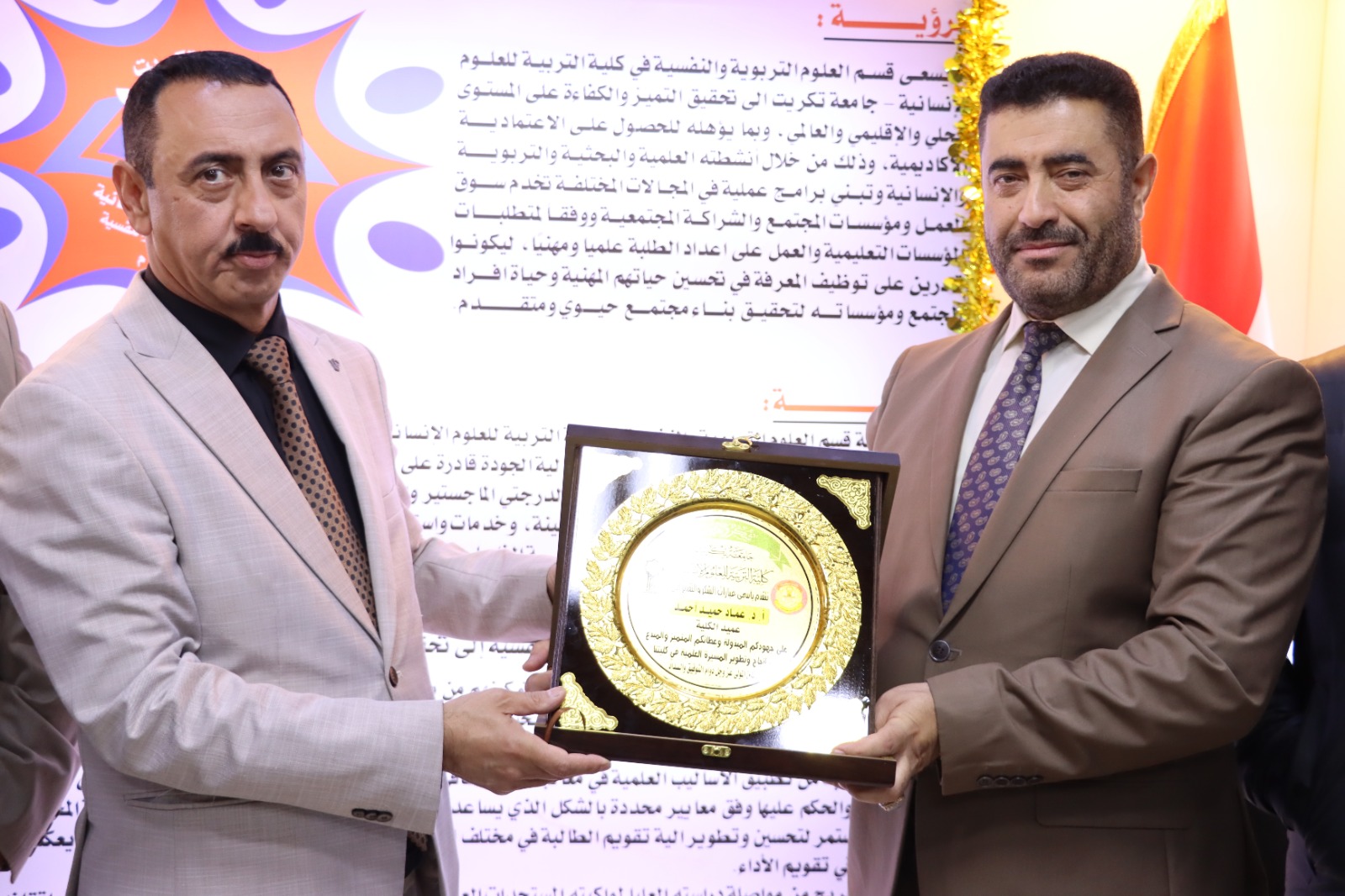 برعاية السيد رئيس جامعة تكريت الاستاذ الدكتور وعد محمود رؤوف وبحضور السيد مساعد رئيس الجامعة للشؤون الإدارية الاستاذ الدكتور حسين عبد اسماعيل وباشراف السيد عميد كلية التربية للعلوم الإنسانية الاستاذ الدكتور عماد حميد احمد انطلقت اليوم الثلاثاء الموافق (٢٠٢٤/١١/٢٦) فعاليات الاسبوع الإرشادي السنوي الأول الذي يقيمه قسم العلوم التربوية والنفسية في كليتنا بالتعاون مع شعبة الارشاد النفسي والتوجيه التربوي في رئاسة جامعة تكريت بعنوان ( دور الارشاد النفسي والتوجيه التربوي في تعزيز الصحة النفسية والتنمية الأكاديمية في ضل التحولات الرقمية) والتي ستستمر لغاية يوم الاحد الموافق (٢٠٢٤/١٢/١) اذ تضمن الافتتاح معرضاً للنتاجات العلمية والفنية الخاصة ببرنامج الارشاد النفسي والتوجيه التربوي في الكلية ، وقد ضم المعرض نتاجات تدريسيين وطلبة القسم بهدف تشجيع ودعم النتاجات العلمية حيث تم عرض (٧٠) لوحة ارشادية معبرة عن المشاكل السلوكية والاساليب الإرشادية المعالجة لها . وتضمنت الافتتاحية عرض رسالة قسم العلوم التربوية والنفسية المحدثة وعرض لوحة تعريفية عن علم النفس الرقمي واهم فروعه وهو الارشاد والتوجيه التربوي الرقمي بالاضافة الى عرض النتاجات الارشادية والتوجيهية لاساتذة وطلبة القسم التي سوف تقدم ضمن النشاطات التوعوية الجوالة خلال فعاليات الاسبوع الإرشادي .وكذلك تم عرض ندوة بعنوان ( الارشاد النفسي والتوجيه التربوي الرقمي ) من تقديم الاستاذ الدكتور نمير ابراهيم حميد والمدرس الدكتور رحاب عبد الوهاب احمد والمدرس المساعد مصطفى سعيد ميران والمدرس المساعد انمار ناظم بدر . هذا وعلى هامش المعرض كرم ممثل السيد مساعد رئيس الجامعة للشؤون الادارية والسيد عميد كلية التربية للعلوم الإنسانية الاساتذة المتقاعدين من تدريسيي القسم مثمنين لهم دورهم الكبير وجهودهم الاستثنائية المهنية التي بذلوها خدمة للمسيرة العلمية في عراقنا الحبيب . مؤكدين على اهمية هذا النشاط المتميز والذي يهدف الى تعميق وعي اساتذة وطلبة الجامعة بالارشاد النفسي والتوجيه التربوي الرقمي. والذي يعبر عن مدى انتمائهم للجامعة وتجسيدهم لدورهم الارشادي مؤكداً ان مثل هذه النشاطات تزيد الوعي بحب المهنة والاخلاص لها لدى الاساتذة وتعميق وعي الطلبة بدورهم ، اذ تثمن عمادة كلية التربية للعلوم الإنسانية متمثلةً بالسيد عميد الكلية الأستاذ الدكتور عماد حميد احمد جهود اساتيذ وطلبة قسم العلوم التربوية والنفسية وشعبة الإرشاد النفسي في رئاسة الجامعة ووحدة الارشاد النفسي في كليتنا لإقامتها هاكذا فعاليات علمية مثمرة ، راجين لهم دوام الموفقية والعطاء خدمة لكليتنا ولجامعتنا الحبيبة.