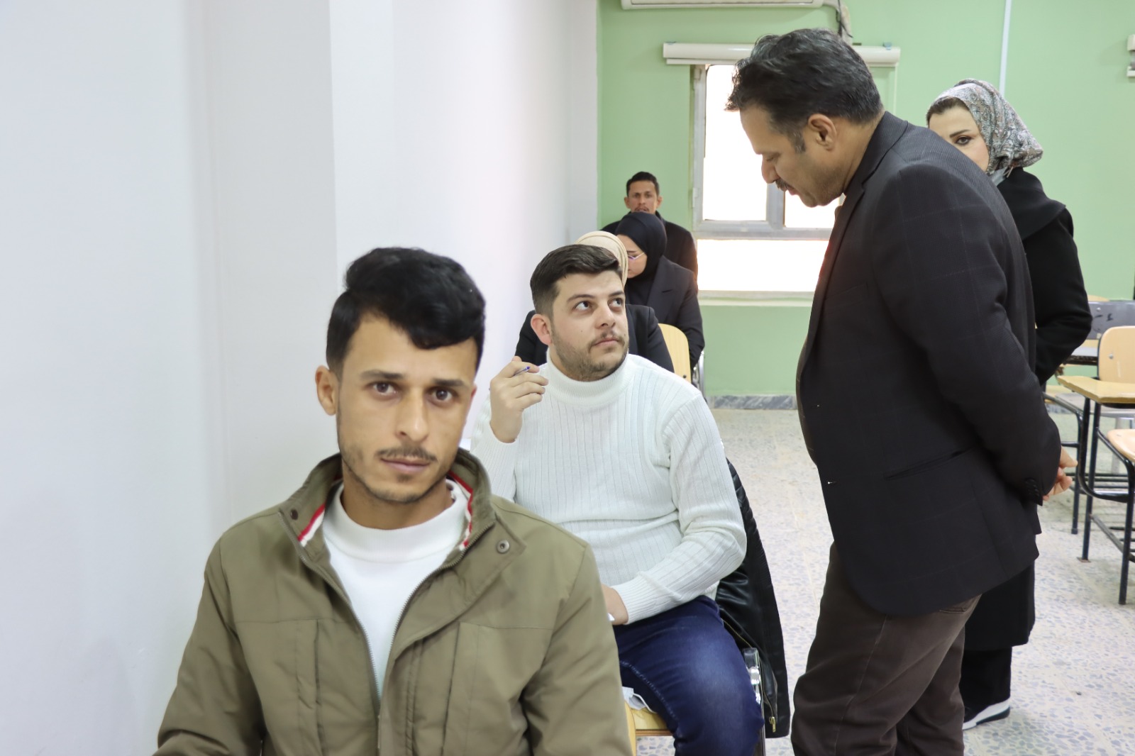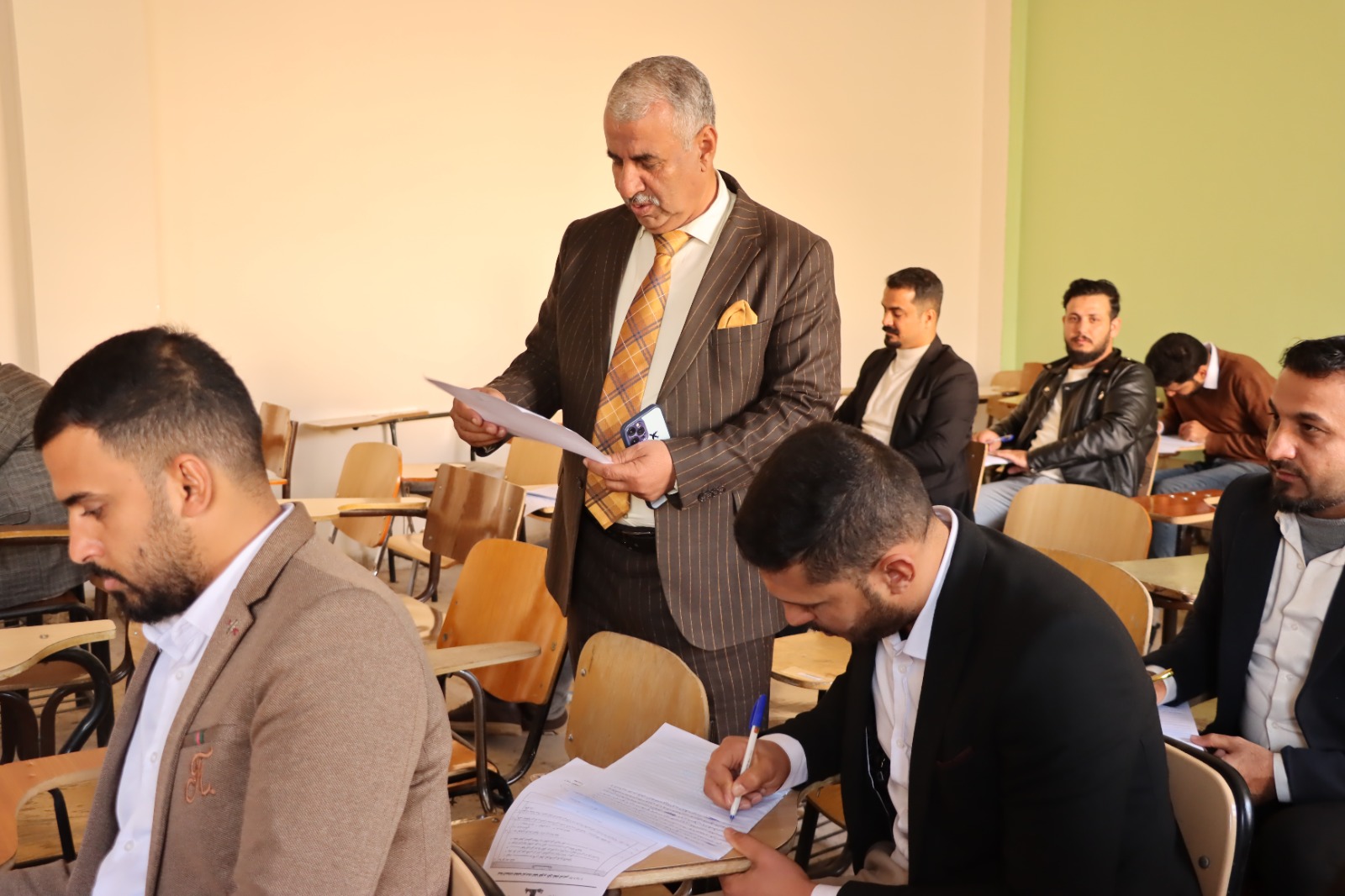 جانب من الامتحانات النهائية لطلبة الدراسات العليا (الكورس الاول) وزيارة اللجنة المركزية في رئاسة الجامعة القاعات الامتحانية