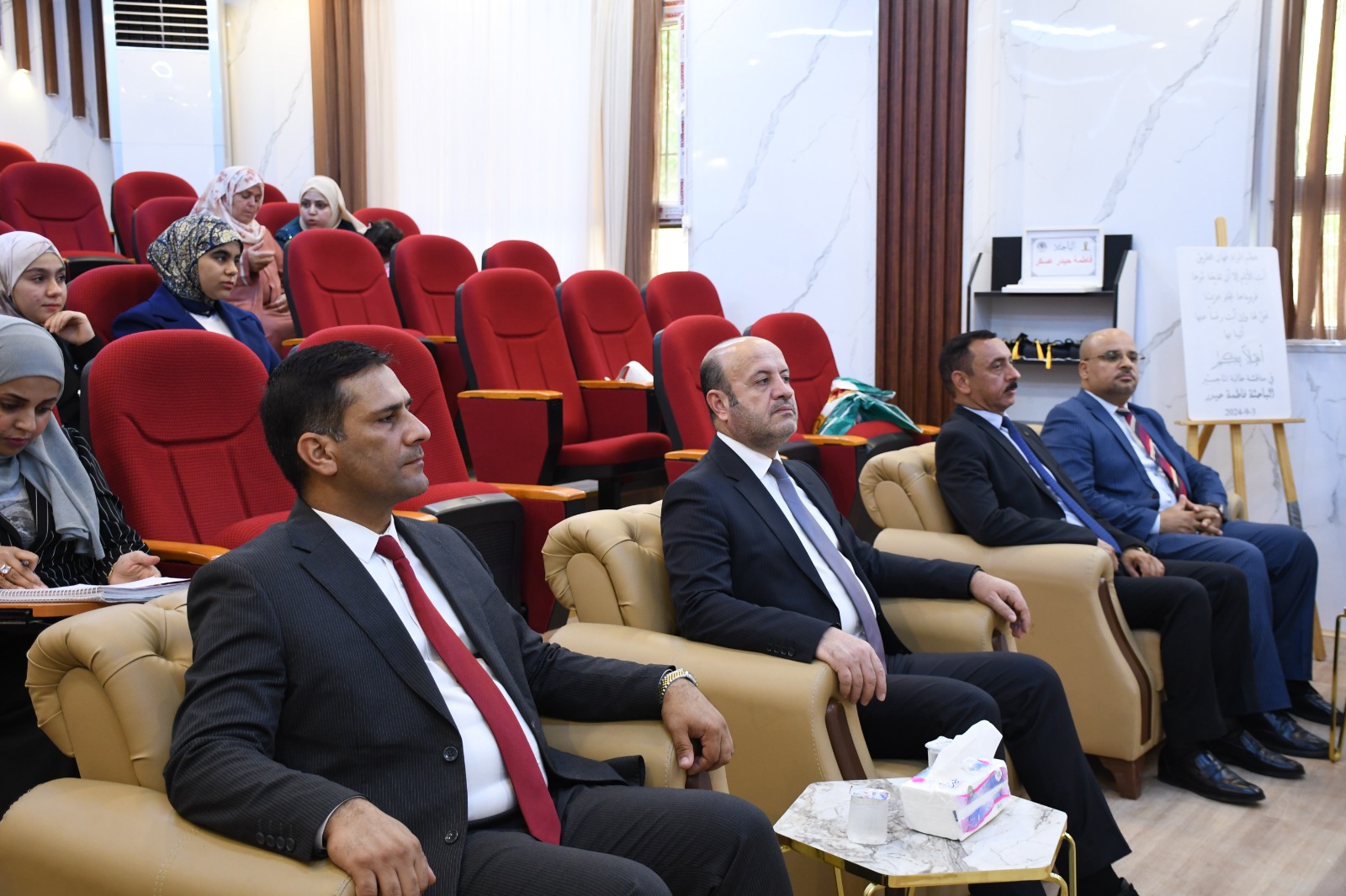جانب من حضور السيد عميد كلية التربية للعلوم الإنسانية الاستاذ الدكتور عماد حميد احمد لمناقشة رسالة الماجستير للطالبة فاطمة حيدر من كلية التربية للعلوم الصرفة