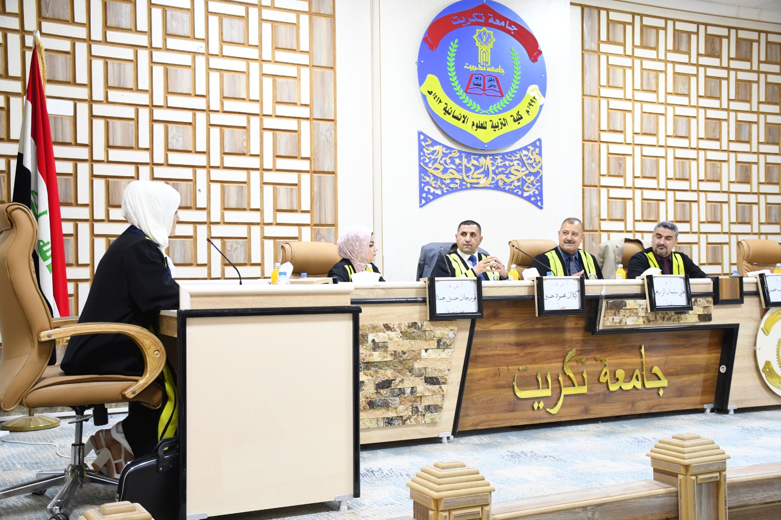 جانب من حضور السيد عميد كلية التربية للعلوم الإنسانية الاستاذ الدكتور عماد حميد احمد لمناقشة رسالة الماجستير للطالبة نور غازي من كلية الآداب