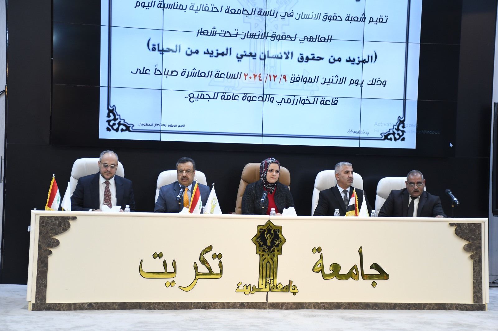 جانب من مشاركة كلية التربية للعلوم الإنسانية في الاحتفالية التي اقامتها رئاسة جامعة تكريت - شعبة حقوق الإنسان بمناسبة اليوم العالمي لحقوق الإنسان تحت شعار (المزيد من حقوق الانسان يعني المزيد من الحياة)