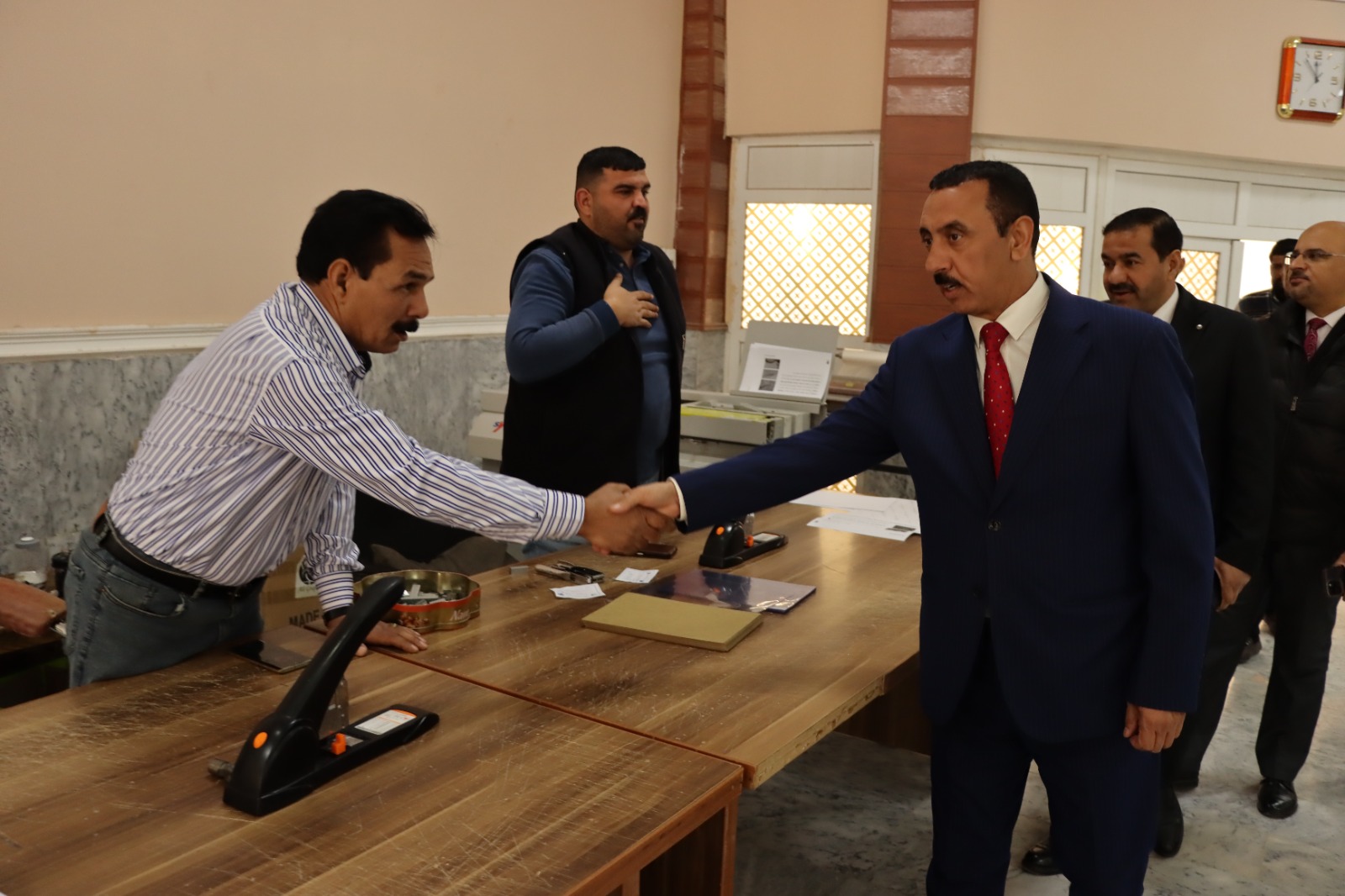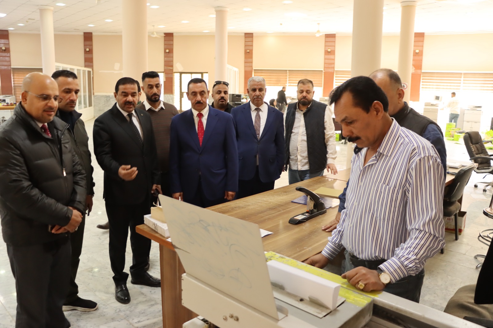 زار السيد عميد كلية التربية للعلوم الإنسانية الاستاذ الدكتور عماد حميد احمد اليوم الأحد الموافق (٢٠٢٤/١٢/١) برفقة السيد معاون العميد للشؤون الإدارية الاستاذ الدكتور عادل صالح علاوي والسيد معاون العميد للشؤون العلمية الاستاذ الدكتور رشيد لطيف ابراهيم مطبعة الجامعة والتقى بمديرها وكادرها الوظيفي لمد آفاق التعاون بين الكلية وباقي مفاصل الجامعة مؤكدا دعمه لمطبعة الجامعة التي تعتبر من المفاصل المهمة في الجامعة لما تقدمه من خدمات وتسهيلات عديدة لطلبة الدراسات العليا والاولية وللتدريسيين من خلال طبع الكتب المنهجية والبحوث والرسائل والاطاريح العلمية ، راجين لهم دوام الموفقية والنجاح في مسيرتهم العلمية.