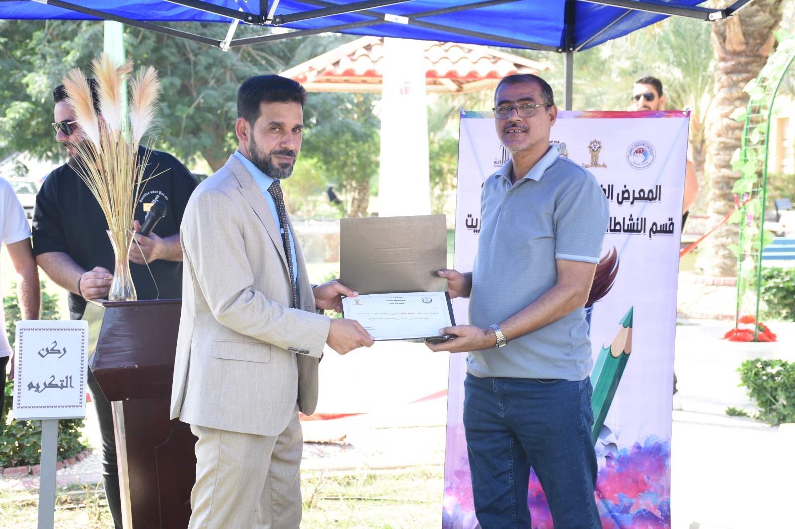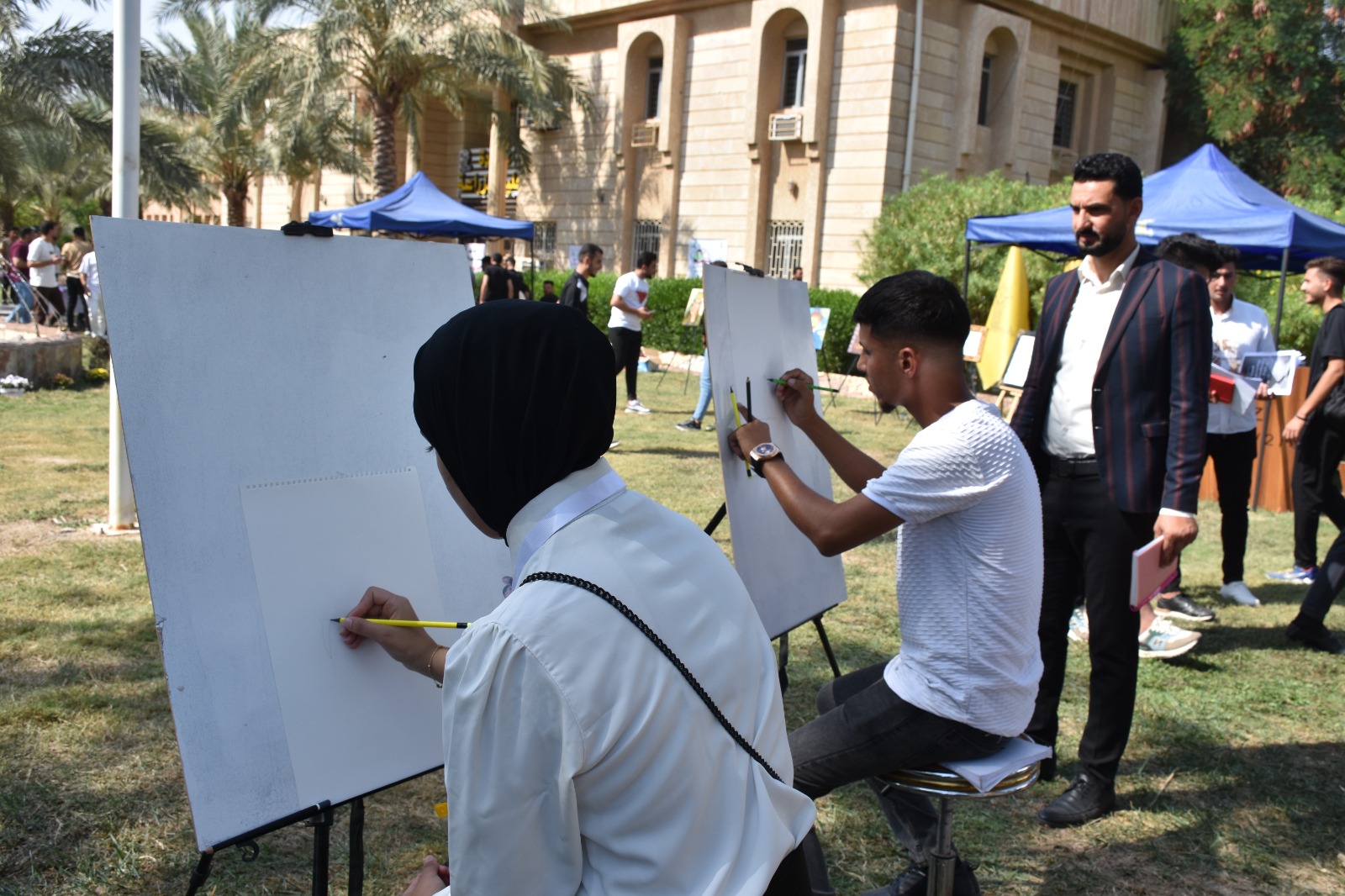 شاركت كلية التربية للعلوم الإنسانية في الفعالية الفنية ( المعرض و الرسم ) و التي أقيمت في كلية الزراعة و بالتعاون مع قسم النشاطات الطلابية في رئاسة الجامعة اليوم الأربعاء الموافق (٢٠٢٤/١٠/١٦) ، اذ تضمن المعرض فعالية الرسم الحر ، وقد حصد الطالب احمد عبد زيدان قسم التربية الفنية المرحلة الثانية المركز الأول . اذ تثمن عمادة كلية التربية للعلوم الإنسانية متمثلةً بالسيد عميد الكلية الأستاذ الدكتور عماد حميد احمد جهود طلبتها في رفع اسم كليتنا من خلال المشاركة بهكذا نشاطات فنية ، راجين دوام الموفقية والعطاء خدمة لكليتنا ولجامعتنا الحبيبة.