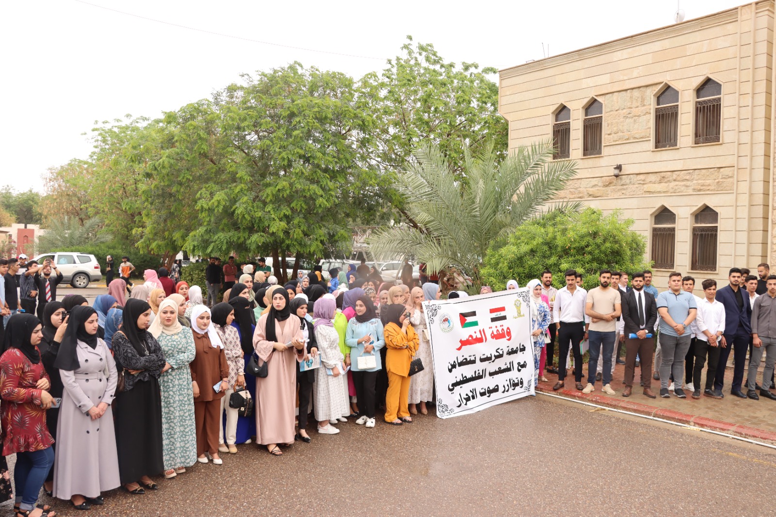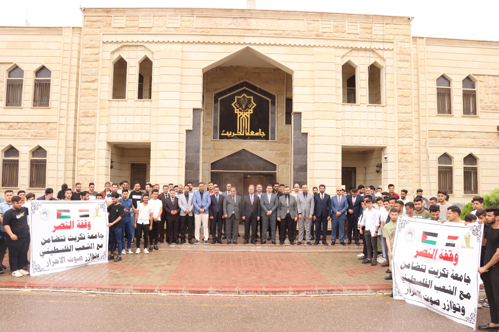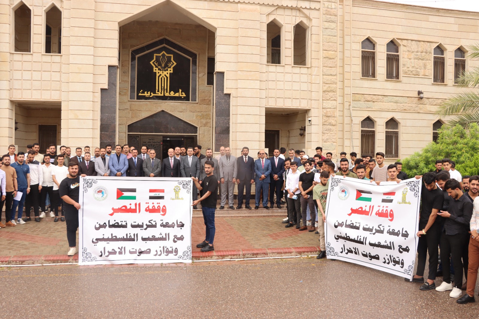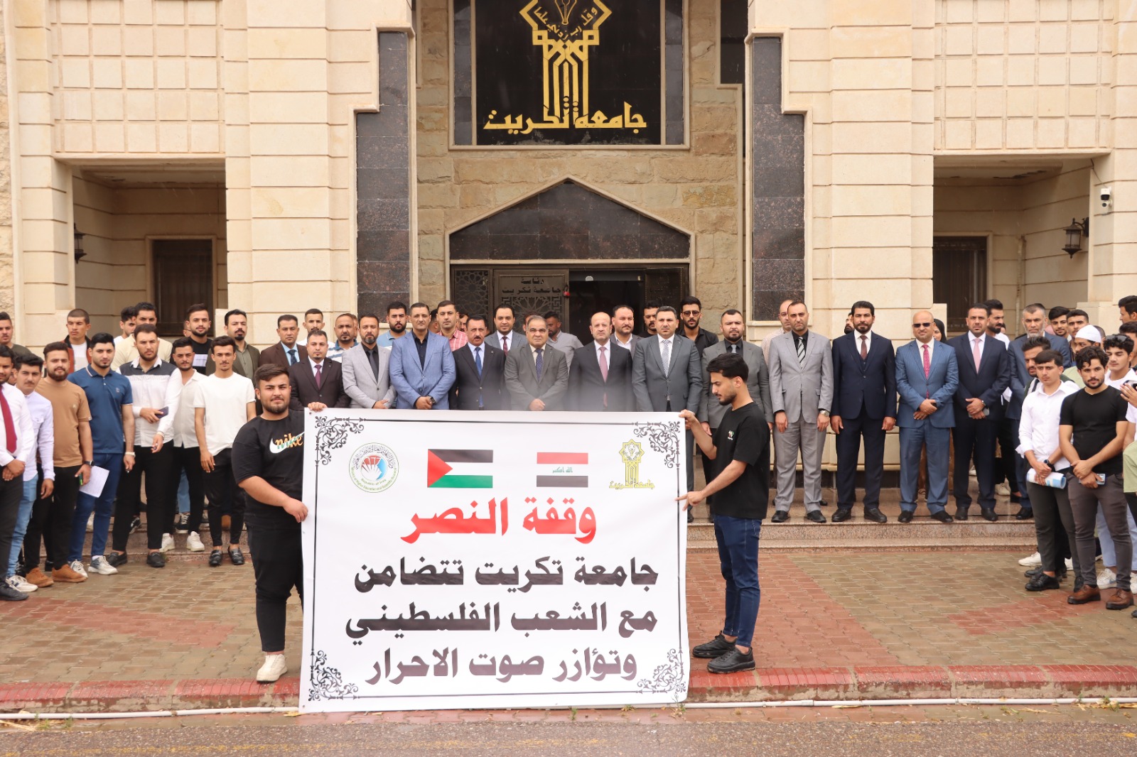 كلية التربية للعلوم الانسانية تشارك في وقفة النصر مع الشعب الفلسطيني التي اقامتها جامعة تكريت وتؤازر صوت الاحرار في غزة