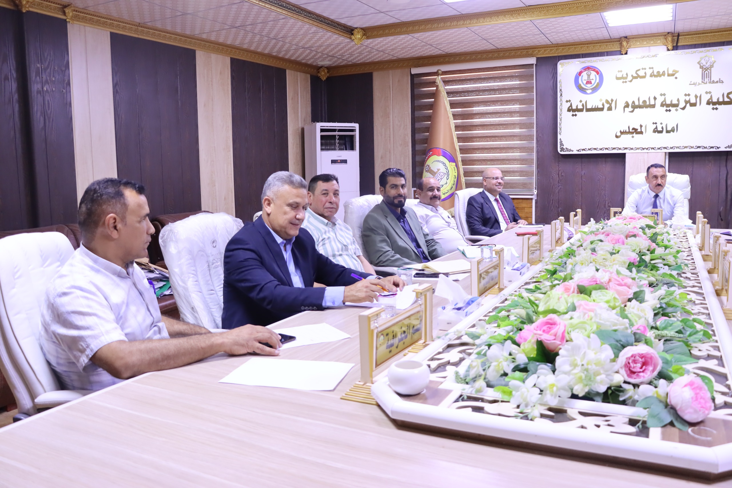 عقد مجلس كلية التربية للعلوم الانسانية اليوم الاثنين الموافق (٢٠٢٥/٩/١٥) جلسته الثالثة للعام الدراسي ٢٠٢٥-٢٠٢٦ ، برئاسة السيد عميد الكلية الاستاذ الدكتور عماد حميد أحمد وبحضور السادة اعضاء مجلس الكلية ، اذ تضمنت الجلسة مناقشة امور عدة تخص لمصلحة العامة للكلية والاستعدادات اللازمة لاستقبال الطلبة للعام الدراسي الجديد .