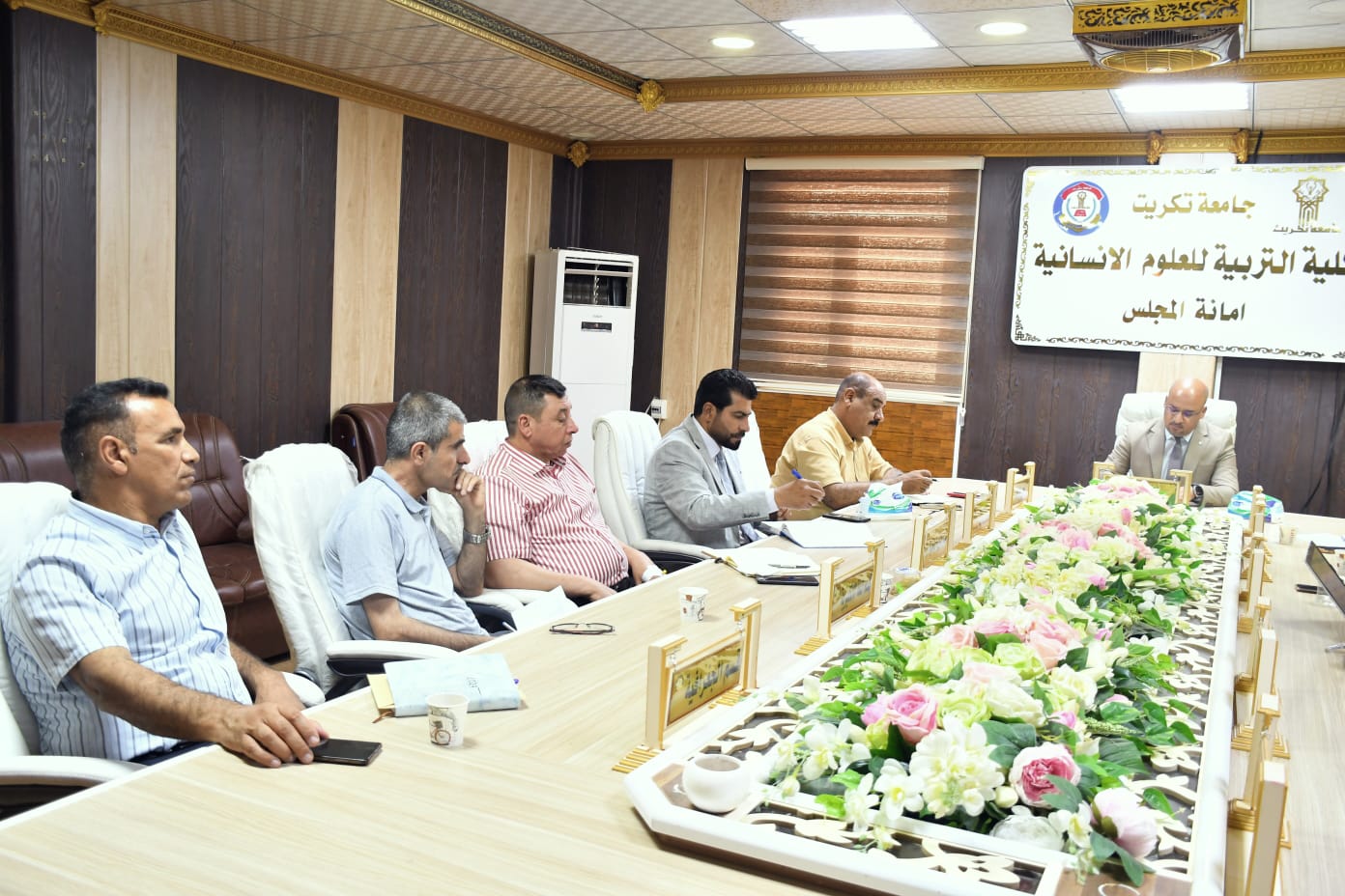 عقد مجلس كلية التربية للعلوم الانسانية اليوم الاحد الموافق الموافق (٢٠٢٤/٦/٢٣) جلسته الواحدة و الثلاثين للعام الدراسي ٢٠٢٣-٢٠٢٤ ، برئاسة السيد عميد الكلية الاستاذ الدكتور عماد حميد أحمد ينوب عنه السيد معاون العميد للشؤون الإدارية الاستاذ الدكتور عادل صالح علاوي وبحضور السادة اعضاء مجلس الكلية اذ تضمنت الجلسة مناقشة امور عدة تخص المصلحة العامة منها توسعة آفاق التعاون بين الكليات ، والتهيئة للامتحان التنافسي للطلبة المتقدمين للدراسات العليا .