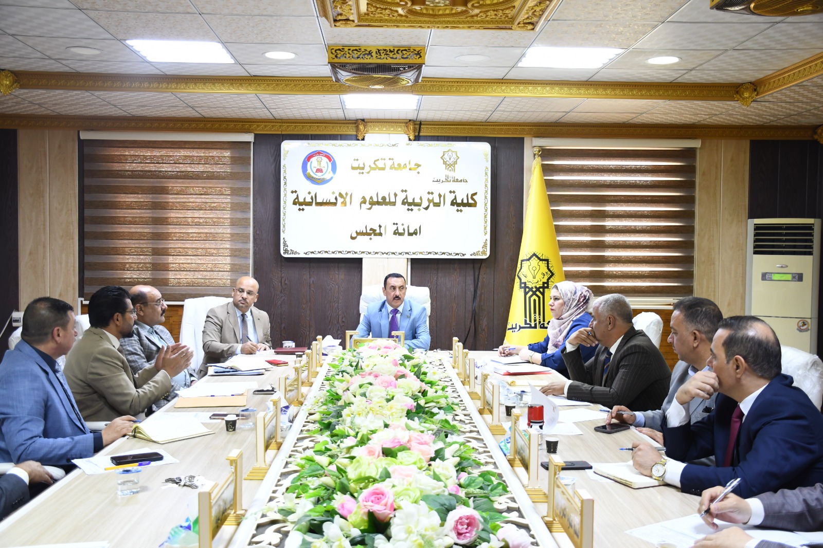 عقد مجلس كلية التربية للعلوم الانسانية اليوم الاربعاء الموافق الموافق (٢٠٢٤/١٠/٢٣) جلسته السابعة للعام الدراسي ٢٠٢٤-٢٠٢٥ ، برئاسة السيد عميد الكلية الاستاذ الدكتور عماد حميد أحمد وبحضور السادة اعضاء مجلس الكلية اذ تضمنت الجلسة مناقشة امور عدة تخص مد جسور التعاون العلمي بين الكليات ، وتحديد موعد الامتحان الشامل لطلبة الدراسات العليا (الدكتوراه) الدور الثاني .