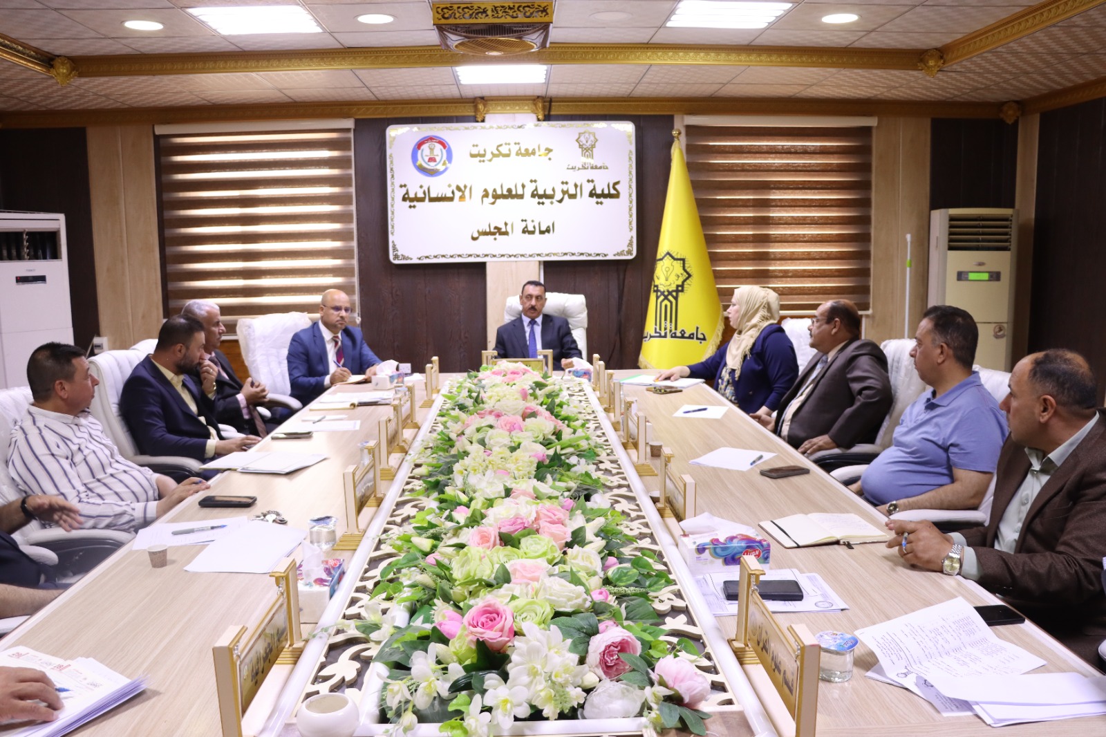 عقد مجلس كلية التربية للعلوم الانسانية اليوم الاثنين الموافق (٢٠٢٤/٤/١٥) جلسته الثالثة و العشرون للعام الدراسي ٢٠٢٣-٢٠٢٤ ، برئاسة السيد عميد الكلية الاستاذ الدكتور عماد حميد أحمد وبحضور السادة اعضاء مجلس الكلية اذ تضمنت الجلسة مناقشة امور عدة تخص المصلحة العامة منها مناقشة الخلفية العلمية للاقسام والمقاصة العلمية وتوسعة آفاق التعاون بين الكليات ، ومتابعة دوام طلبة الدراسات العليا و الاولية .