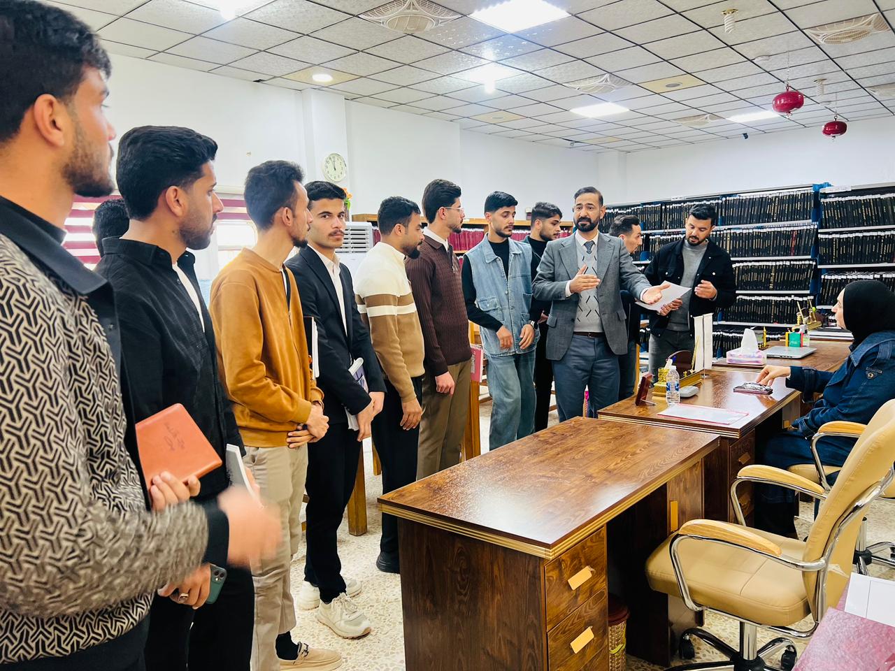 بتوجيه من السيد عميد كلية التربية للعلوم الإنسانية الأستاذ الدكتور عماد حميد أحمد، نظّم أساتذة قسم الجغرافية اليوم الأربعاء الموافق (٢٠٢٦/٢/١١) زيارة علمية لعدد من طلبة القسم إلى المكتبة المركزية ، وتخللت الزيارة تقديم نبذة تعريفية عن طبيعة عمل المكتبة، والمصادر والكتب التي تضمها، إضافةً إلى شرح آلية استعارة الكتب والخدمات المقدمة للطلبة والباحثين. كما هدفت الزيارة إلى إطلاع الطلبة على أنواع المصادر المتوفرة وطرق البحث عنها واستثمارها في دراستهم وبحوثهم العلمية.