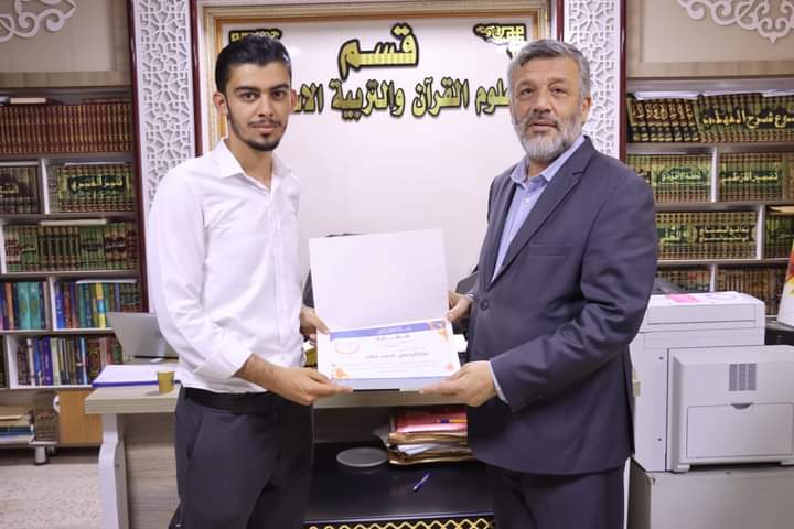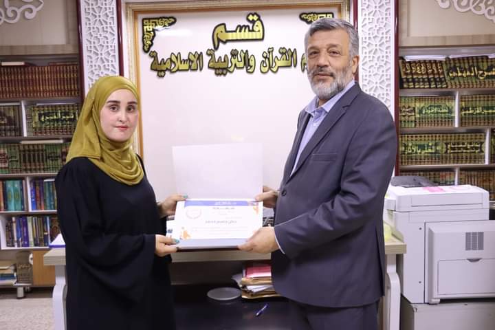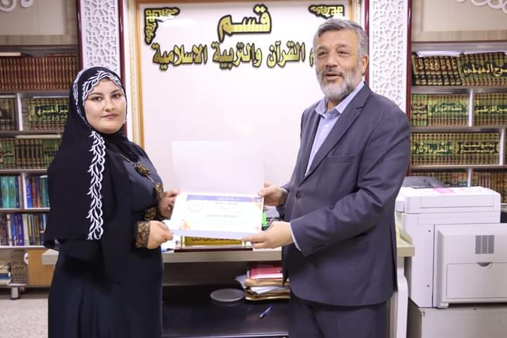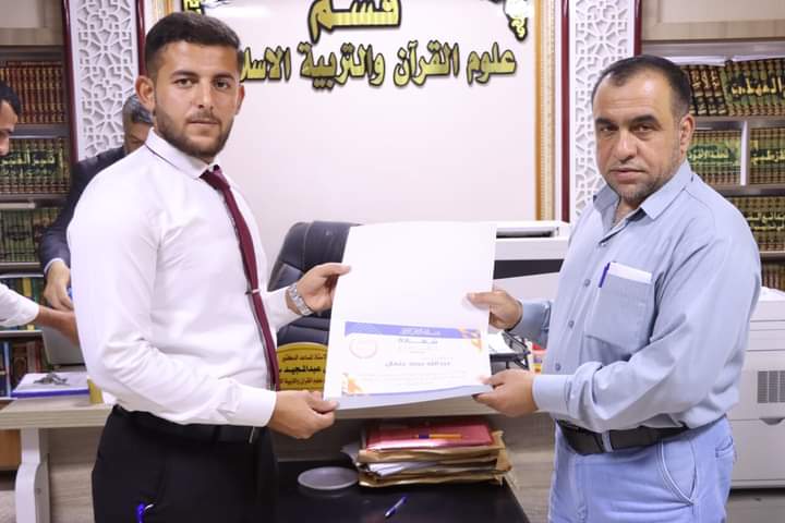 كرم السيد رئيس قسم علوم القرآن والتربية الاسلامية الاستاذ المساعد الدكتور عقيل عبد المجيد سعيد والمدرس الدكتورة نور سعد حمود المشرفة على فريق اللؤلؤ المكنون اعضاء الفريق اليوم الاثنين الموافق (٢٠٢٤/٦/٣) بشهادات تقديرية تثمينا لجهودهم المبذولة خلال مشاركتهم في الأنشطة والفعاليات والمبادرات الصفية واللا صفية التي تنفذت خلال العام الدراسي 2023_2024 . اذ تثمن عمادة كلية التربية للعلوم الإنسانية متمثلةً بالسيد عميد الكلية الأستاذ الدكتور عماد حميد احمد جهود اساتيذ وطلبة قسم علوم القرآن في اقامة النشاطات التطوعية خلال العام الدراسي المنصرم والتي تهدف إلى بث روح التعاون بين طلبة الجامعة ، راجين لهم دوام الموفقية والنجاح في مسيرتهم العلمية.