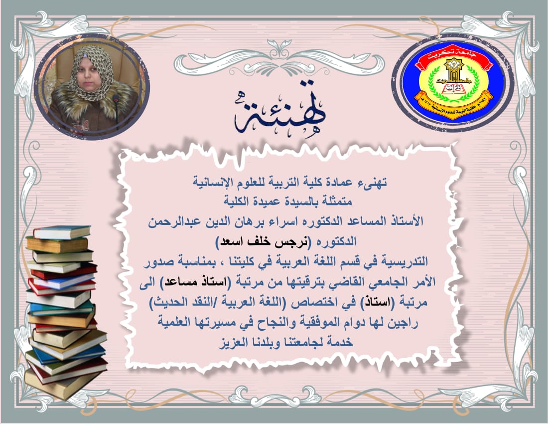 ترقية علمية ( أ.د أحسان نظير حسين )