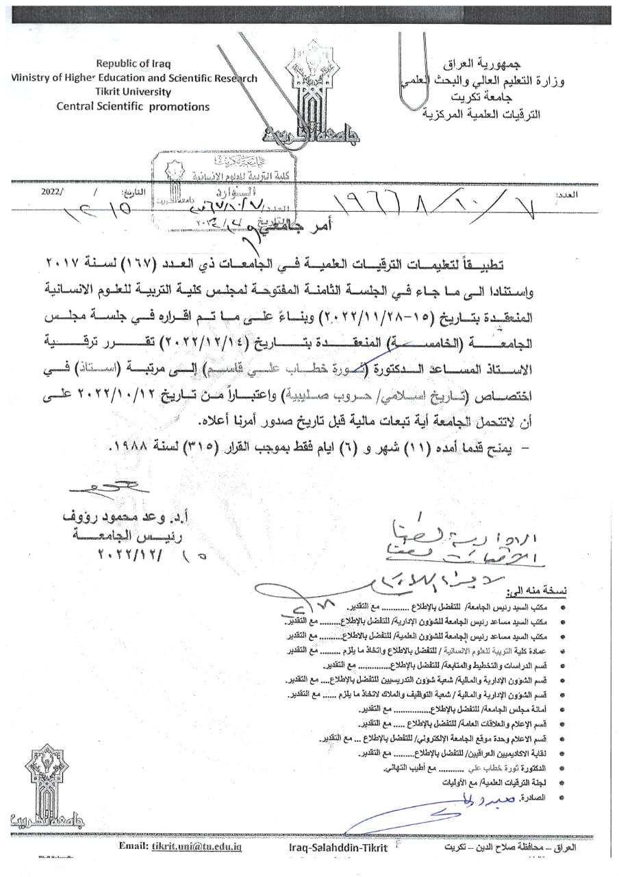 ترقية علمية ( أ.م.د عداي ناجي حمد )