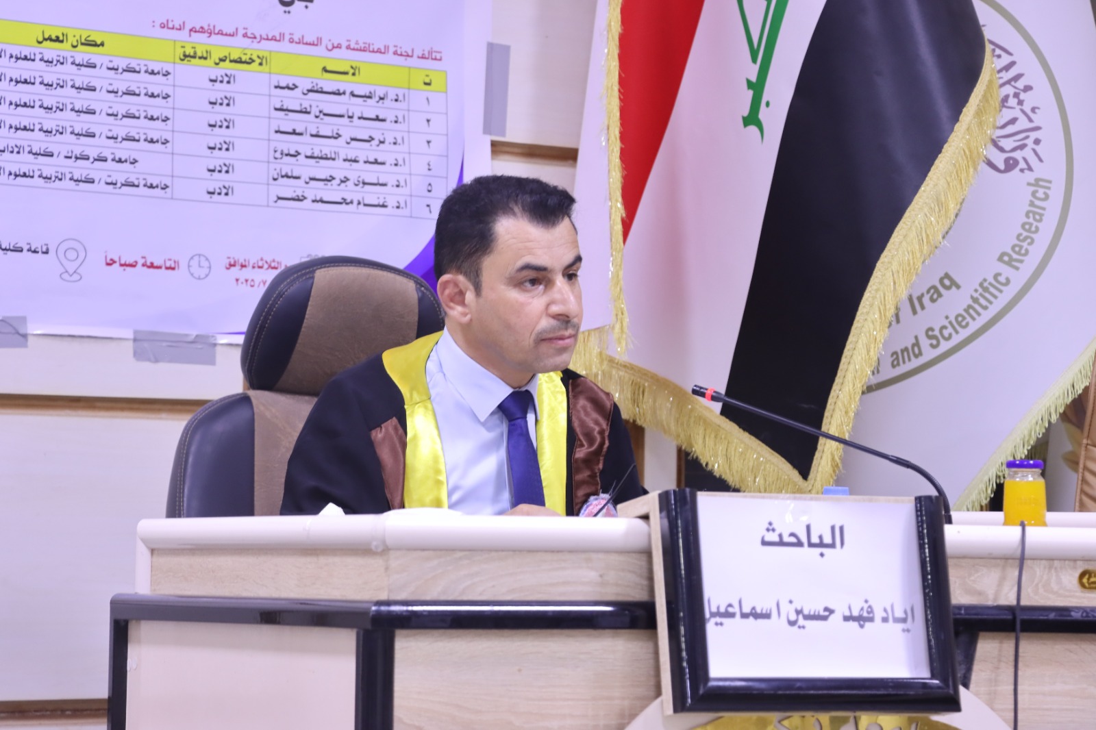 نوقشت في كلية التربية للعلوم الإنسانية قسم اللغة العربية اليوم الثلاثاء الموافق (٢٠٢٥/٧/١٥) أطروحة الدكتوراه للطالب(إياد فهد حسين الجبوري) الموسومة (المرجعيات في مسرحيات عبد الفتاح قلعة جي ذات الفصل الواحد).
