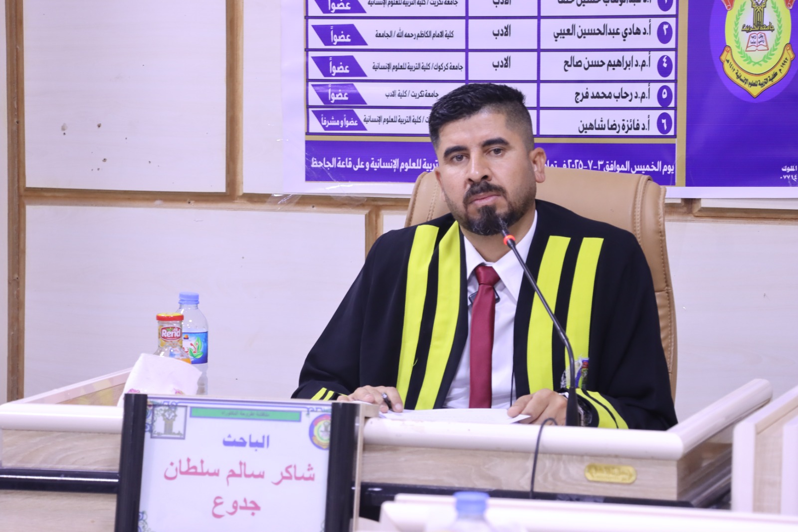 نوقشت في كلية التربية للعلوم الإنسانية قسم التاريخ اليوم الخميس الموافق (3/7/2025) اطروحة الدكتوراه للطالب شاكر سالم سلطان ، الموسومة (كتاب روضة التعريف بالحب الشريف للسان الدين أبن الخطيب الأندلسي (٧٧٦هـ) دراسة فنيّة جاءت هذه الدراسة بقسمين فنية وموضوعية و تناولت الفنية منها الإيقاع بنوعيه الداخلي والخارجي ومواطنهما والدراسة الموضوعية حسب الموضوعات التي تطرق إليها ابن الخطيب في كتابه هذا ومنها الشكوى والوعظ والفضائل والحب الحقيقي عند ابن الخطيب ومفاهيم صوفية وفلسفية وغير
