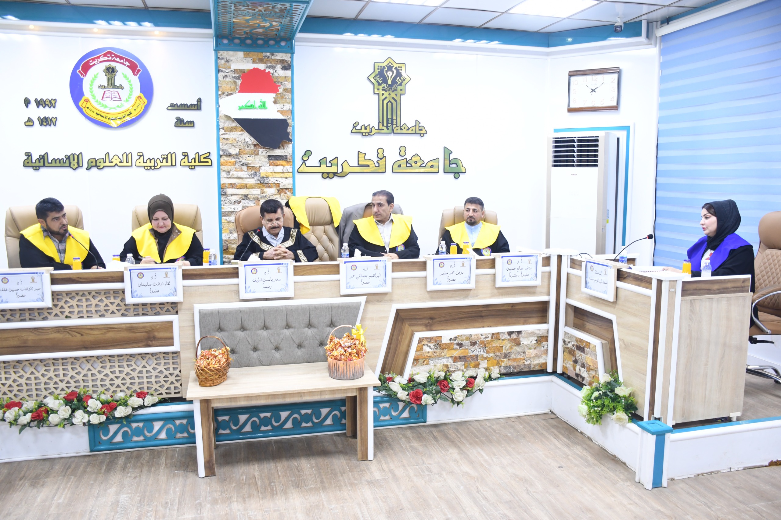 نوقشت في كلية التربية للعلوم الإنسانية قسم التاريخ اليوم الخميس الموافق (18/9/2025) اطروحة الدكتوراه للطالبة بسمة إبراهيم خلف الموسومة (شعر محمود سامي البارودي دراسة وفق المنهج الاجتماعي).