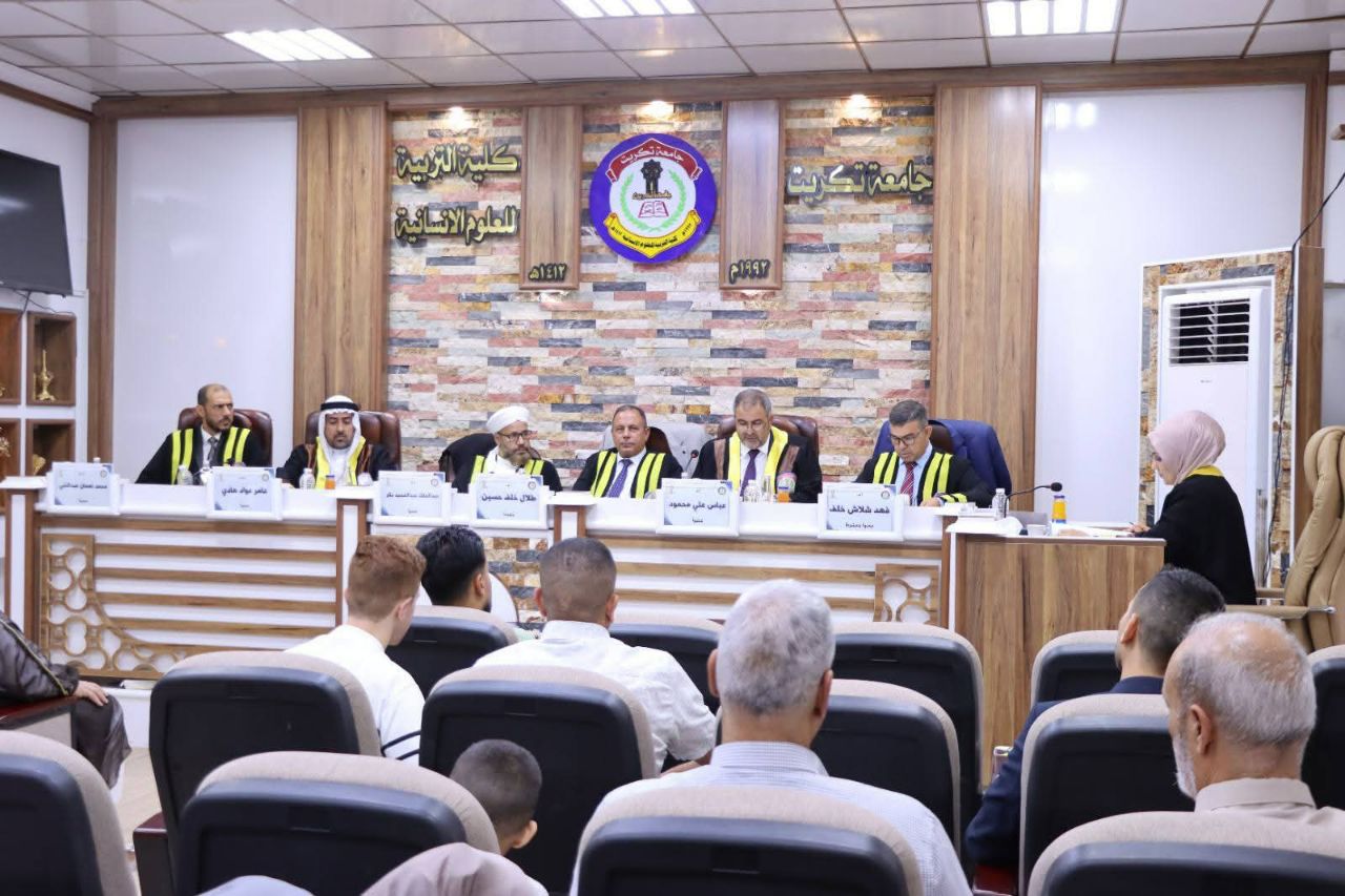 نوقشت في كلية التربية للعلوم الإنسانية قسم علوم القرآن والتربية الاسلامية اليوم الاثنين الموافق (2025/9/8) اطروحة الدكتوراه للطالبة (وفاء فاضل ياسين العزي) الموسومة (تبيين الهداية وتوضيح البداية لسيد حافظ محمد بن احمد بن الشيخ مصطفى الكدوسي ( ت 1253هـ ) من باب: مايفسد الصلاة وما يكره فيها إلى كتاب الصوم - دراسة وتحقيق وتعليق). تتناول هذه الأطروحة دراسةً علمية وتحقيقًا دقيقًا لجزء من مخطوط فقهي بعنوان "تبيين الهداية وتوضيح البداية"، من تأليف السيد حافظ محمد بن أحمد بن الشيخ مصطفى الكُدُوسي (ت: 1254هـ)، وهو من علماء المذهب الحنفي المتأخرين، الذين كان لهم إسهام علمي بارز في خدمة المتون الفقهية، ولا سيما الهداية للإمام المرغيناني. اذ يبدأ الجزء المحقَّق من باب ما يفسد الصلاة وما يكره فيها، ويمتد إلى نهاية كتاب الصوم، وهو جزء غني بالمسائل الفقهية التطبيقية التي تمسّ العبادات اليومية للمسلم، وقد تناولها المؤلف بأسلوب تعليمي توضيحي، يجمع بين الشرح والتعليق والتحرير، مع عناية ظاهرة بتقريب المعاني، وشرح العبارات المشكلة في متون الفقه الحنفي.