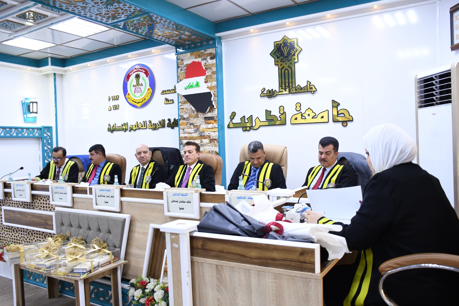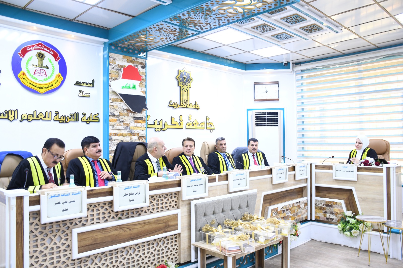 ومن الجدير بالذكر فقد حضر السيد رئيس جامعة تكريت الاستاذ الدكتور وعد محمود رؤوف والسيد عميد كلية التربية للعلوم الإنسانية الاستاذ الدكتور عماد حميد احمد والسيد عميد كلية التربية للعلوم الصرفة الاستاذ الدكتور علي عبدالمجيد وعدد من اساتذة الجامعة جانب من مناقشة الأطروحة ، راجين السادة أعضاء لجنة المناقشة وللباحثة الموفقية والسداد في حياتهم العملية.