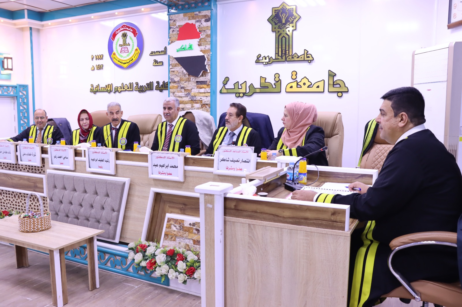 ٦- أ.د محمد ابراهيم عبد جامعة تكريت - كلية التربية للعلوم الإنسانية/ عضواً ومشرفاً