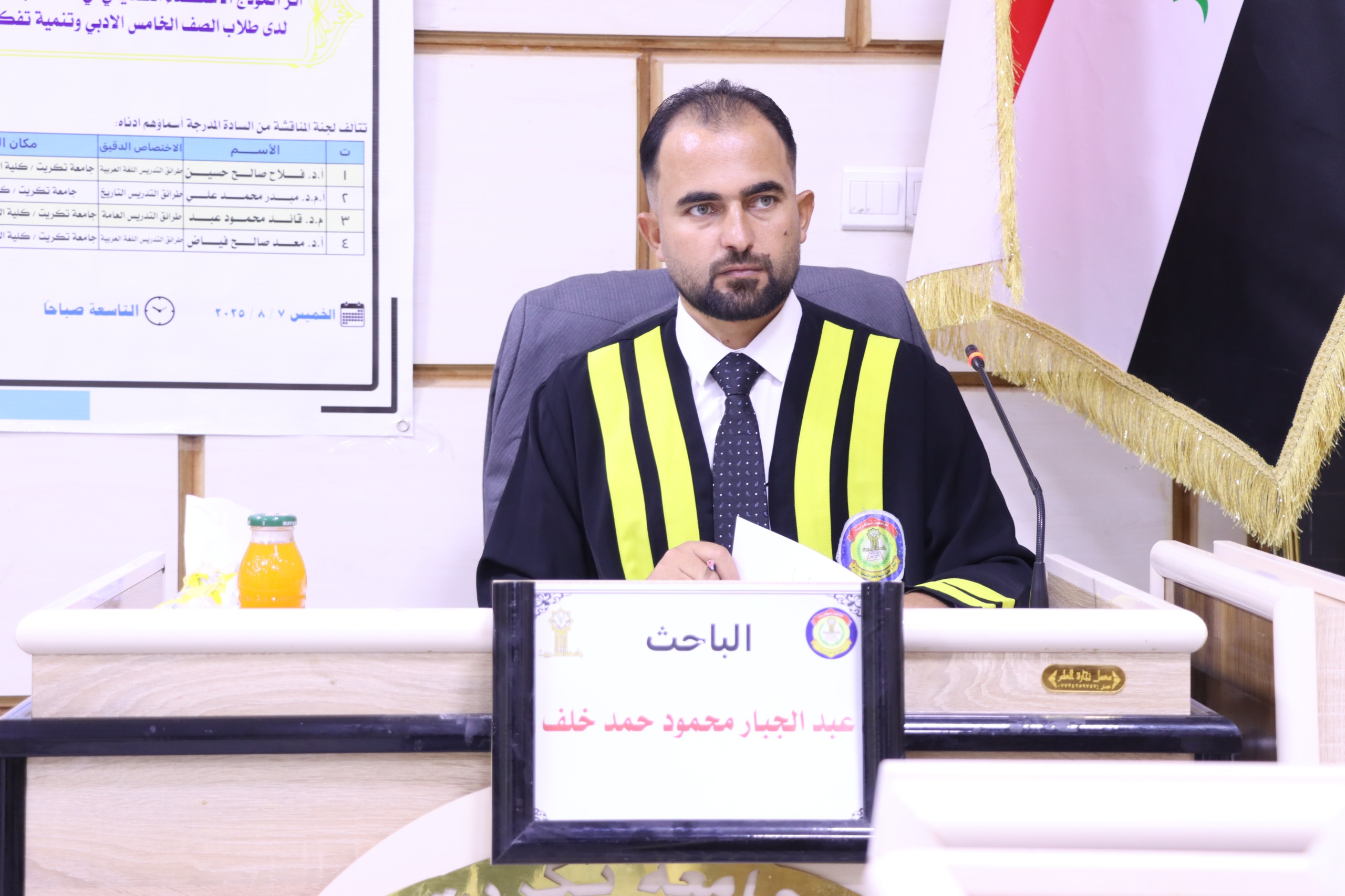 نوقشت في كلية التربية للعلوم الإنسانية قسم العلوم التربوية و النفسية اليوم الخميس الموافق (7/8/2025) رسالة الماجستير للطالب عبدالجبار محمود حمد و الموسومة (أثر انموذج الاستقصاء التقدمي في اكتساب المفاهيم الفلسفية لدى طلاب الصف الخامس الادبي وتنمية تفكيرهم التنبؤي)