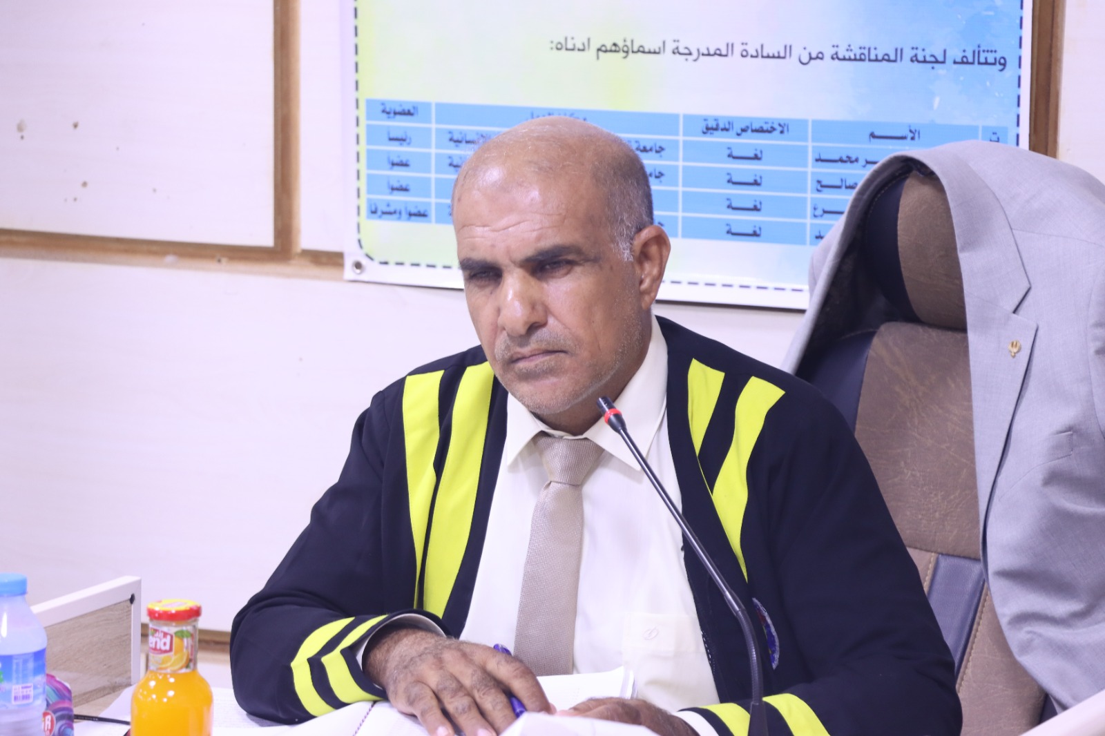 نوقشت في كلية التربية للعلوم الإنسانية قسم اللغة العربية اليوم الاثنين الموافق (28/7/2025) رسالة الماجستير للطالب (محمد احمد عيسى الجميلي) الموسومة (كشف حجب فرائد الهندي الشامل نفعه للرومي والسندي لشهاب الدين التوقاني الشهير بابن عرقية (ت:٩٧٣ هـ) دراسة وتحقيق من أول الكتاب حتى حذف الخبر).