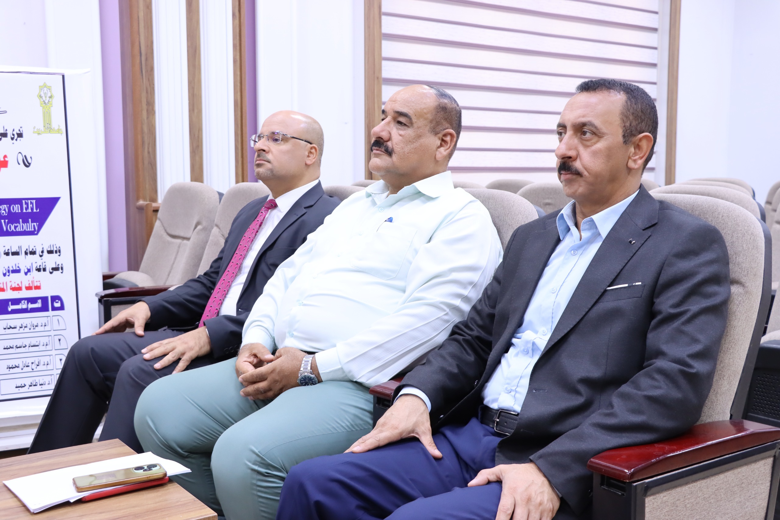 نوقشت في كلية التربية للعلوم الإنسانية قسم اللغة الانكليزية اليوم الخميس الموافق (7/8/2025) رسالة الماجستير للطالب عوف عبدالرحمن عبد والموسومة (The Role of Shades of Meaning Strategy on EFL Intermediate Schools Students ‘New Vocabulary)