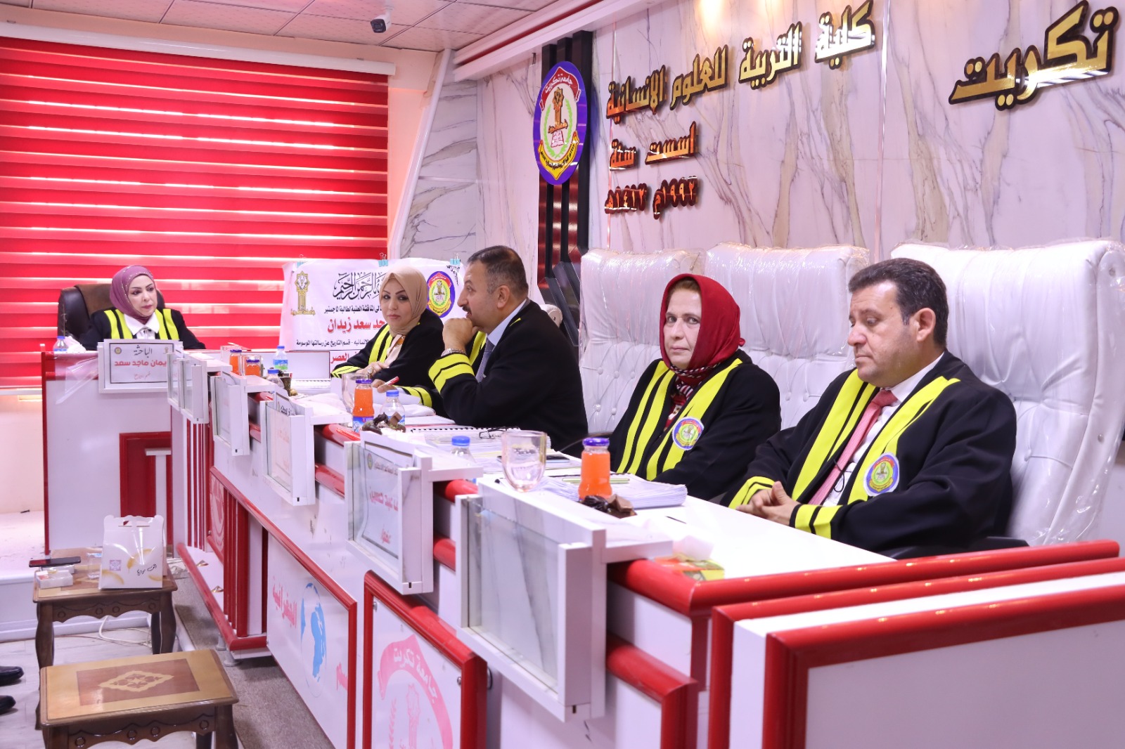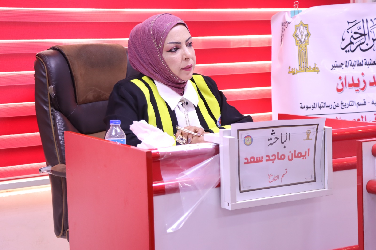 نوقشت في كلية التربية للعلوم الانسانية قسم التاريخ يوم الخميس الموافق (16/5/2024) رسالة الماجستير للطالبة ايمان ماجد سعد زيدان الموسومة (الحياة الاجتماعية لرجال الدولة في العصر العباسي المتأخر ( العصر السلجوقي))