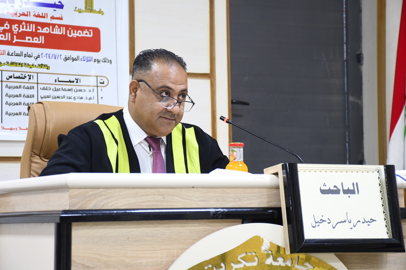 نوقشت في كلية التربية للعلوم الإنسانية قسم اللغة العربية اليوم الثلاثاء الموافق (2/7/2024) رسالة الماجستير للطالب حيدر ياسر دخيل ، الموسومة (تضمين الشاهد النثري في الشعر العباسي لابرز شعراء العصر العباسي الاول).