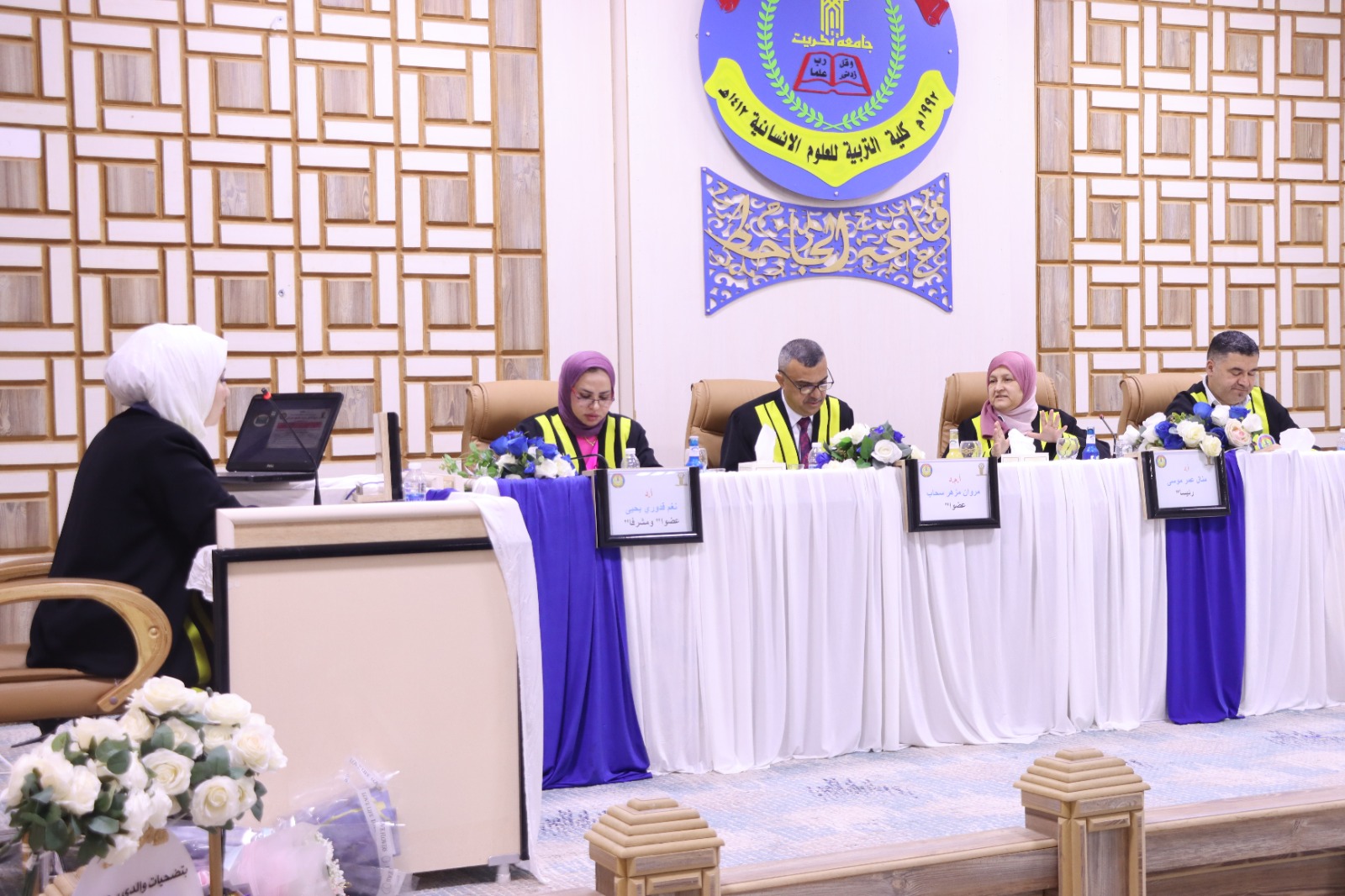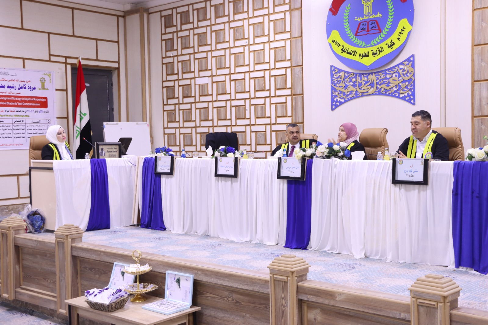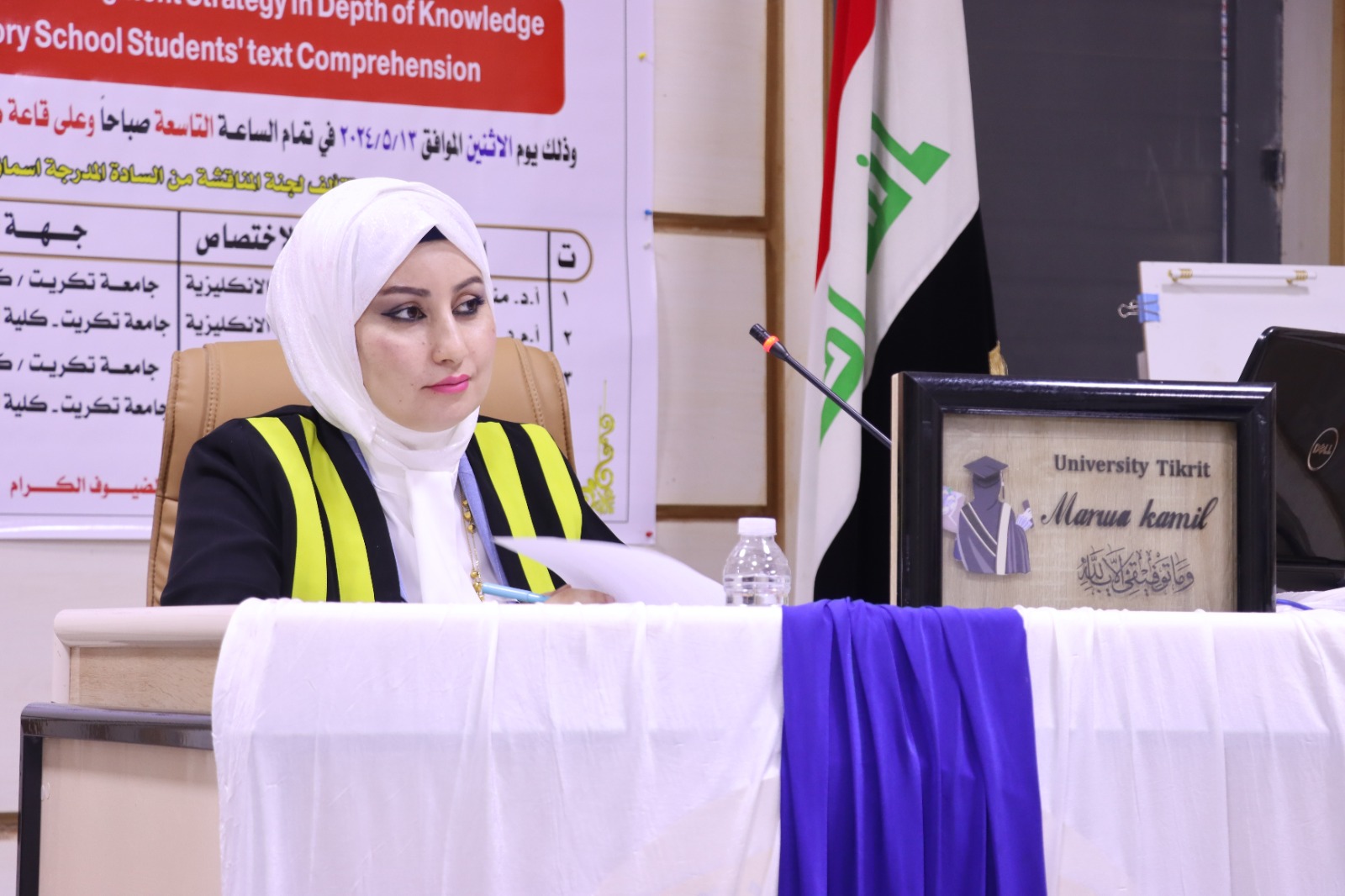 نوقشت في كلية التربية للعلوم الانسانية قسم اللغة الانكليزية يوم الاثنين الموافق ١٣/٥/٢٠٢٤ رسالة الماجستير للطالبة ( مروة كامل رشيد محمود ) الموسومة ( The Effect of Using Rational Judgment Strategy In Depth of Knowledge For EFL Preparatory School Student Text Comprehension