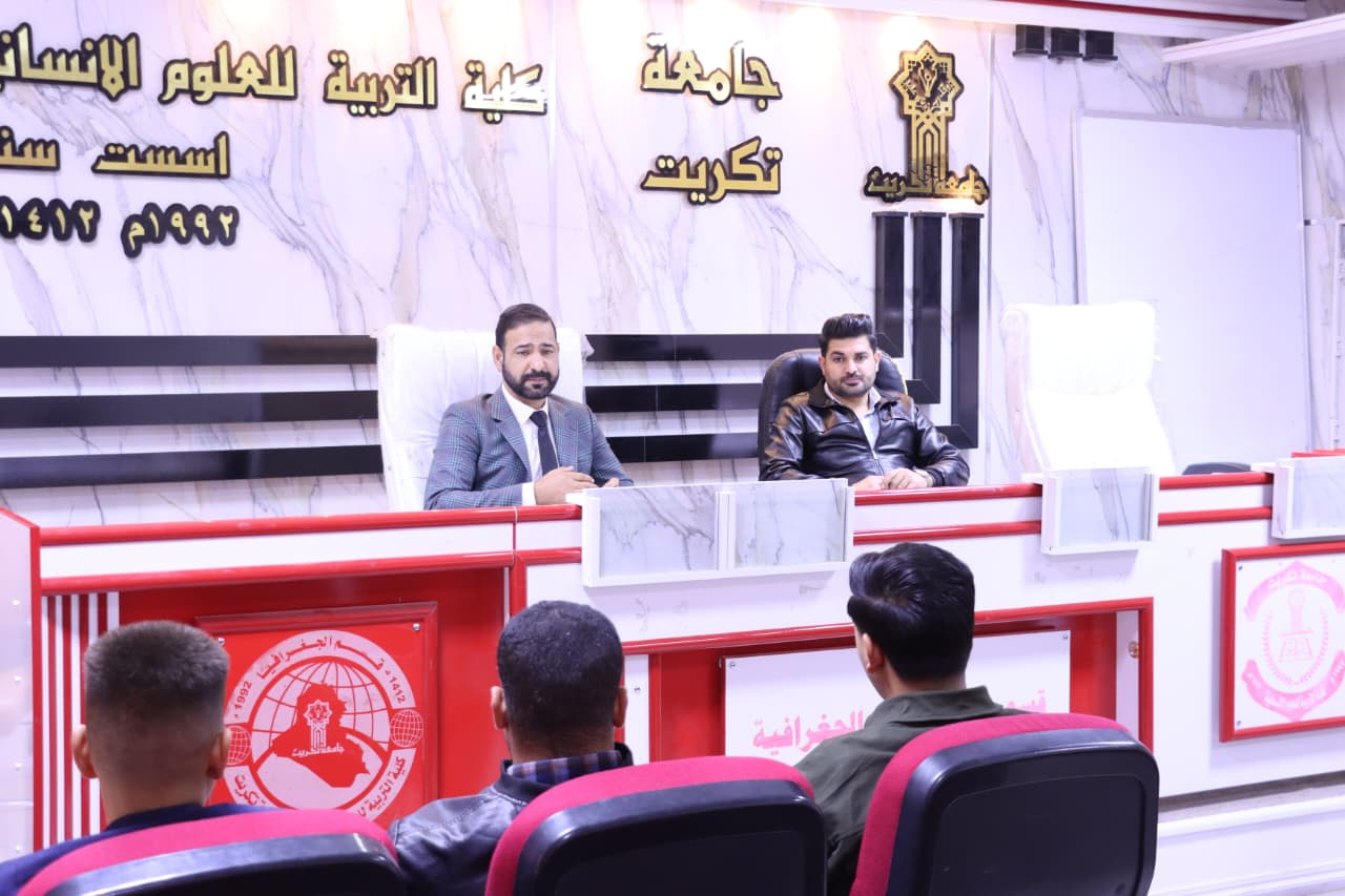 برعاية السيد رئيس جامعة تكريت الأستاذ الدكتور وعد محمود رؤوف، وبإشراف السيد عميد كلية التربية للعلوم الإنسانية الأستاذ الدكتور عماد حميد أحمد، اقام قسم الجغرافية في كليتنا ، وبالتعاون مع مركز التعليم المستمر ندوة علمية بعنوان (العوامل المؤثرة في النقل) اليوم الاثنين (٢٠٢٦/١/١٢) .