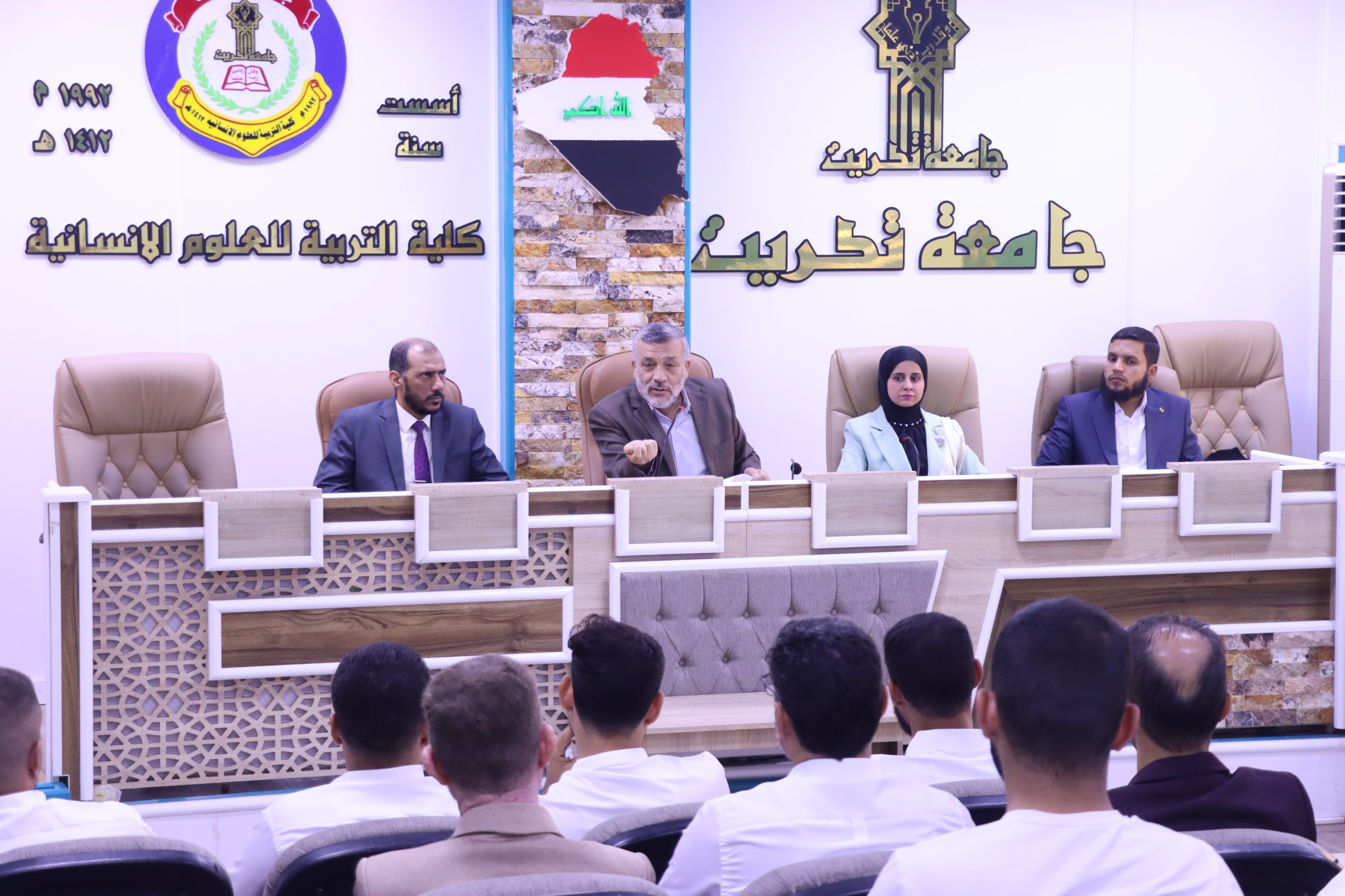برعاية السيد رئيس جامعة تكريت الاستاذ الدكتور وعد محمود رؤوف وبإشراف السيد عميد كلية التربية للعلوم الإنسانية الاستاذ الدكتور عماد حميد احمد اقام قسم علوم القرآن والتربية الإسلامية في كليتنا بالتعاون مع مركز التعليم المستمر اليوم الأحد الموافق (٢٠٢٥/١٠/٢٦) ندوة علمية بعنوان (مفهوم الإشاعة وأثرها على الأوساط الجامعية _ نظرة شرعية) .