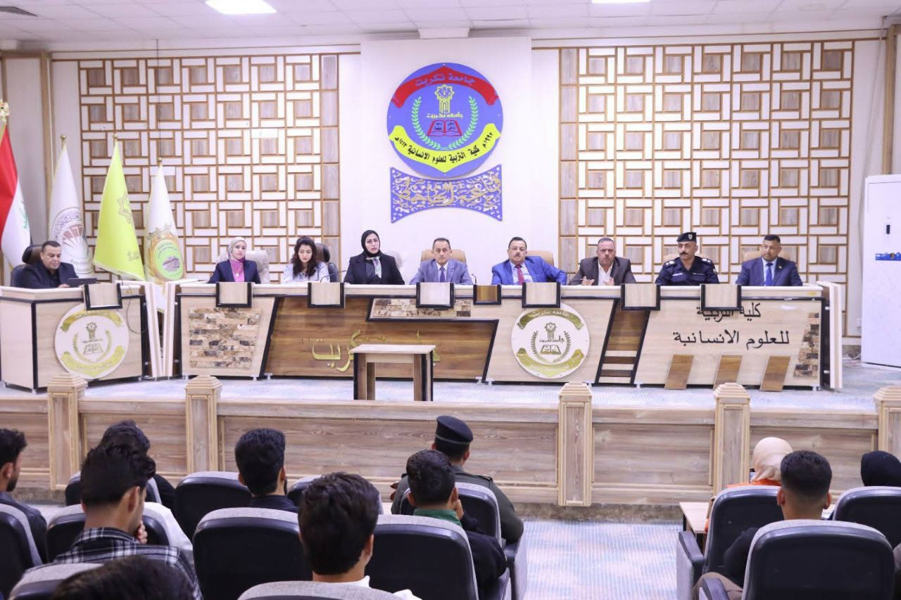 ضمن فعاليات الأسبوع الخاص بمكافحة المخدرات والمؤثرات العقلية برعاية السيد رئيس جامعة تكريت الأستاذ الدكتور وعد محمود رؤوف، وبإشراف السيد عميد كلية التربية للعلوم الإنسانية الأستاذ الدكتور عماد حميد أحمد، نظّمت وحدة الإرشاد النفسي والتوجيه التربوي في الكلية، اليوم الأربعاء الموافق (٢٠٢٥/١١/١٩) ندوة توعوية بعنوان "مخاطر الإدمان وطرق العلاج"، وذلك بالتعاون مع وزارة الداخلية، ضمن فعاليات الأسبوع المخصّص للتوعية بمخاطر المخدرات والمؤثرات العقلية. اذ هدفت الندوة إلى تسليط الضوء على الآثار الصحية والاجتماعية والنفسية المترتبة على تعاطي المخدرات، إضافة إلى بيان أهم الأساليب العلاجية الحديثة ودور المؤسسات الأمنية والصحية في مواجهة هذه الآفة. كما تضمنت الندوة عرضاً لأبرز التحديات التي تواجه المجتمع وسبل الوقاية، إلى جانب التأكيد على ضرورة تعزيز الوعي لدى الطلبة والشباب بوصفهم الشريحة الأكثر استهدافاً. واختتمت الندوة بجملة من التوصيات التي شددت على تعزيز التعاون بين الجهات الأكاديمية والأمنية والصحية، وتكثيف البرامج التثقيفية داخل الجامعات بهدف خلق بيئة واعية وقادرة على مواجهة مخاطر الإدمان والحد من انتشاره.