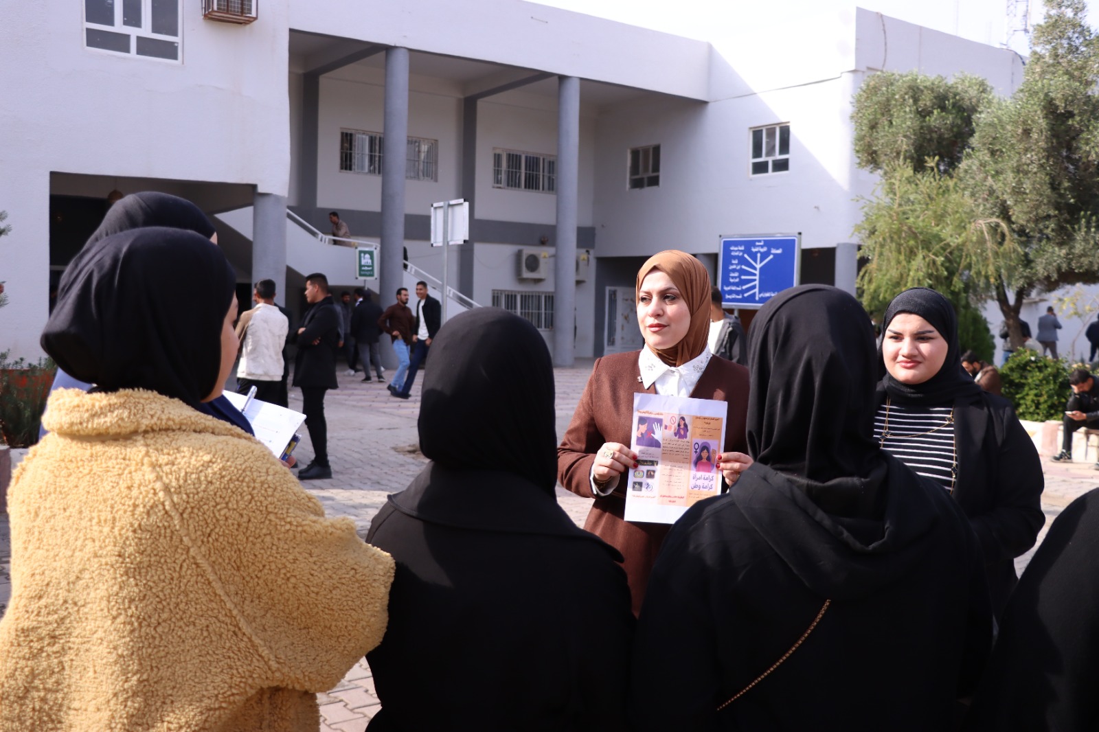 بتوجيه من السيد عميد كلية التربية للعلوم الإنسانية الأستاذ الدكتور عماد حميد أحمد، نظّمت عضو ارتباط وحدة شؤون المراة ذات الاعاقة في كليتنا المدرس الدكتورة لبنى ناجي محمد حملة توعوية بمناسبة اليوم العالمي للعنف ضد المراة ، تحت شعار "كرامة امرأة ... كرامة الوطن" اليوم الأربعاء الموافق (٢٠٢٥/١٢/١٧) .