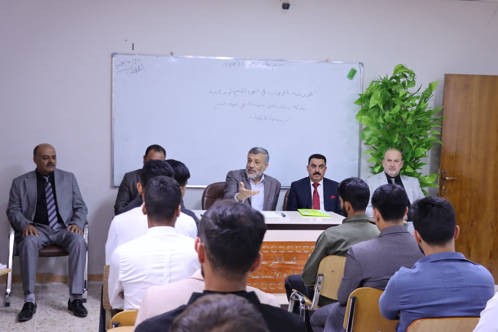 برعاية السيد رئيس جامعة تكريت الاستاذ الدكتور وعد محمود رؤوف وبإشراف السيد عميد كلية التربية للعلوم الإنسانية الاستاذ الدكتور عماد حميد احمد اقام قسم علوم القرآن والتربية الإسلامية في كليتنا اليوم الثلاثاء الموافق (٢٠٢٥/١١/٢٥) ندوة توعوية بعنوان (الإرشاد التربوي في ضوء القيم الإسلامية: مبادئه ومقارباته وإسهامه في تنمية القيم الاجتماعية للطلبة).