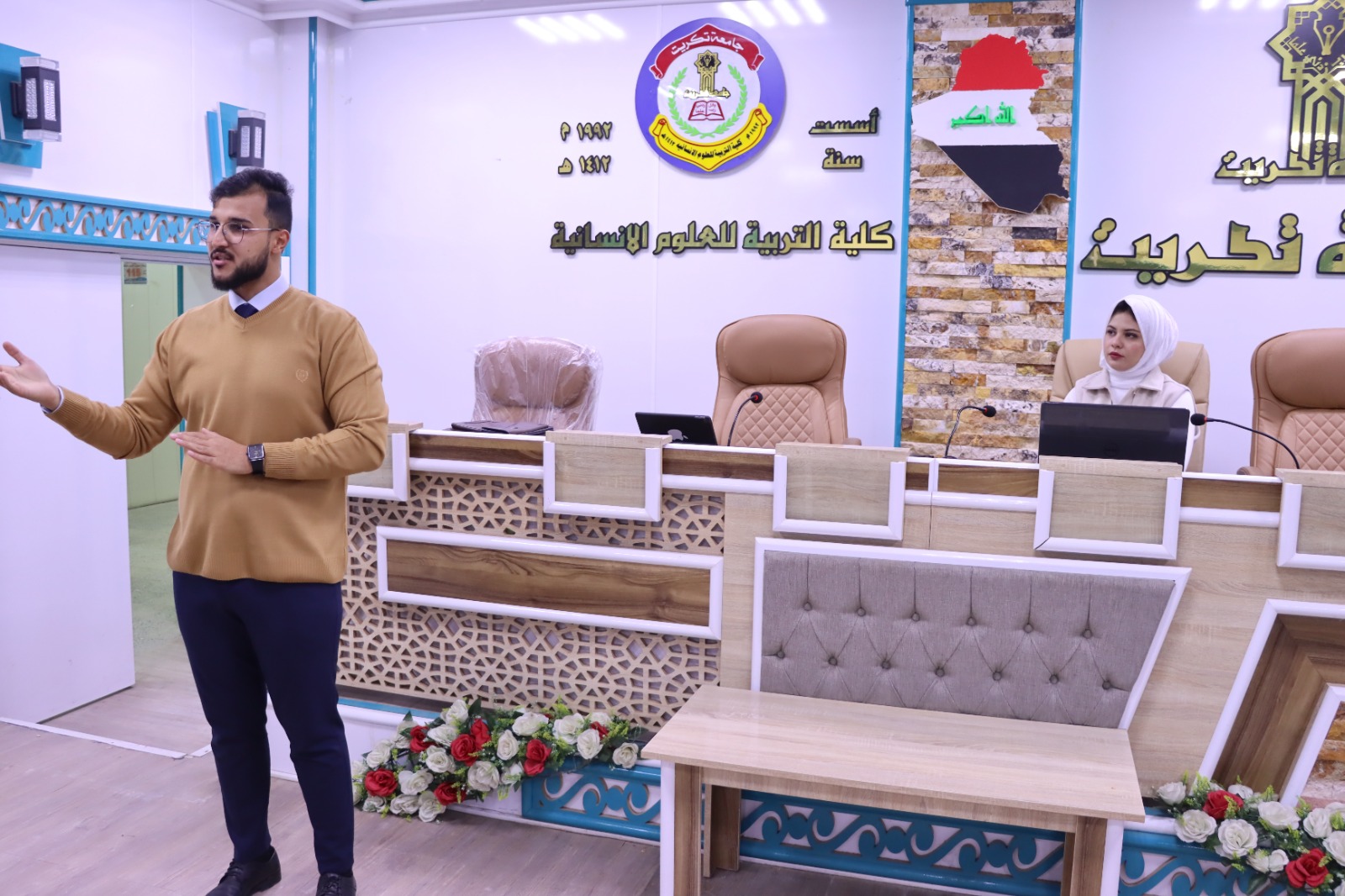 برعاية السيد رئيس جامعة تكريت الاستاذ الدكتور وعد محمود رؤوف وباشراف السيد عميد كلية التربية للعلوم الإنسانية الاستاذ الدكتور عماد حميد احمد اقام قسم اللغة الانكليزية في كليتنا بالتعاون مع مركز التعليم المستمر ندوة علمية بعنوان (التعريف بقسم اللغة الانكليزية - نظرة عامة) اليوم الاثنين الموافق (٢٠٢٥/١/٢٠).