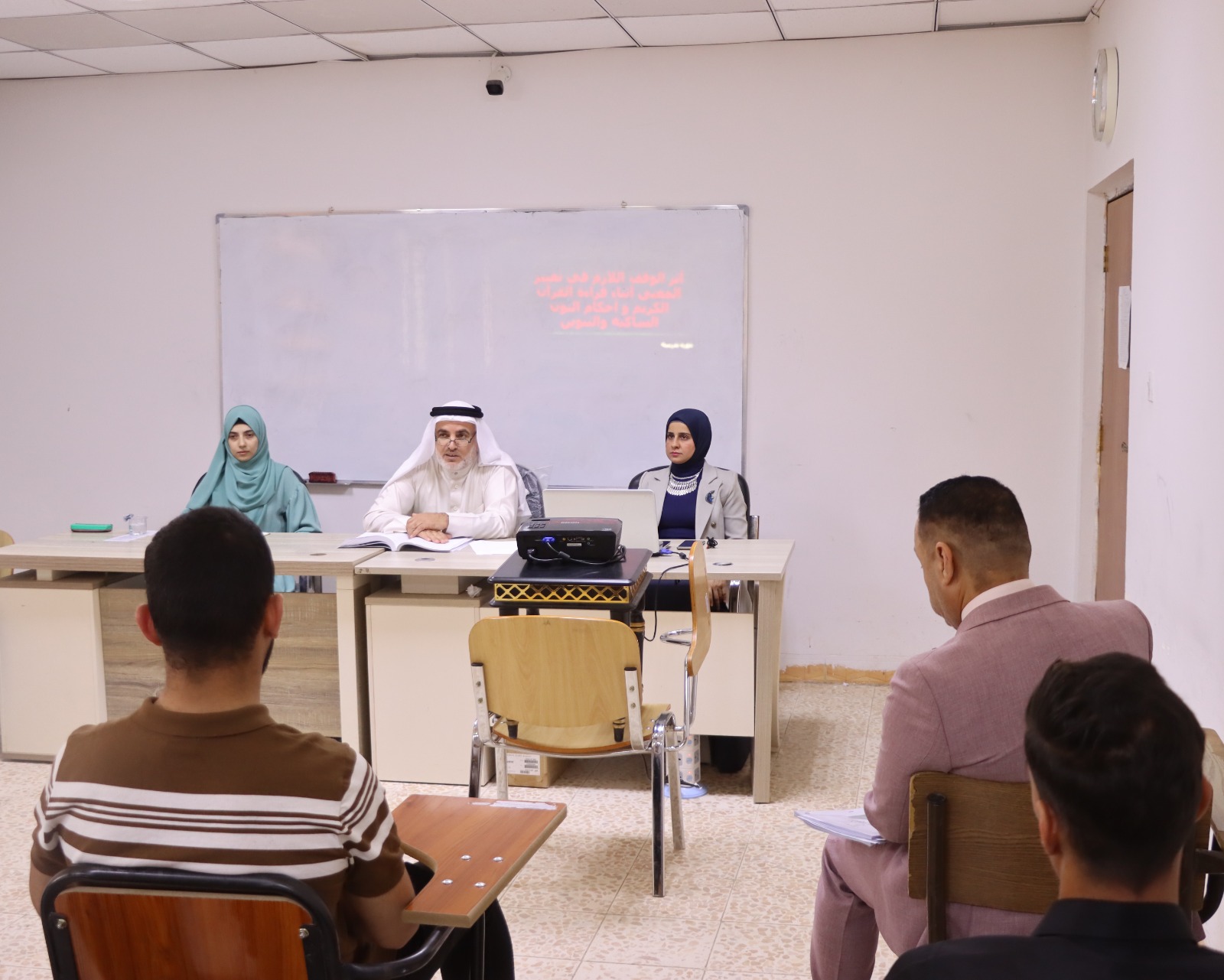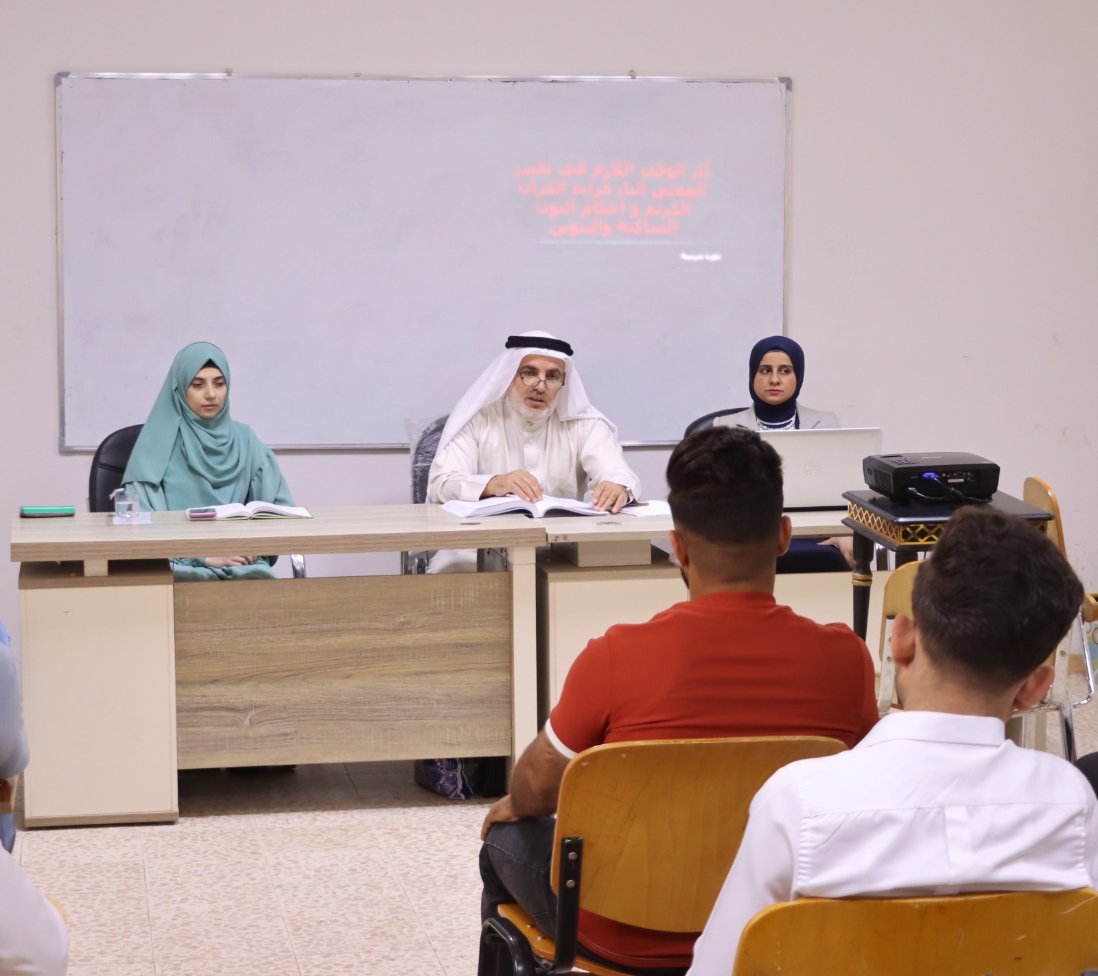 برعاية السيد رئيس جامعة تكريت الاستاذ الدكتور وعد محمود رؤوف وبإشراف السيد عميد كلية التربية للعلوم الإنسانية الاستاذ الدكتور عماد حميد احمد اقام قسم علوم القرآن والتربية الإسلامية في كليتنا اليوم الثلاثاء الموافق (٢٠٢٤/٤/٢٣) دورة علمية بعنوان (أثر الوقف اللازم في تغيير المعنى أثناء قراءة القرآن الكريم و أحكام النون).
