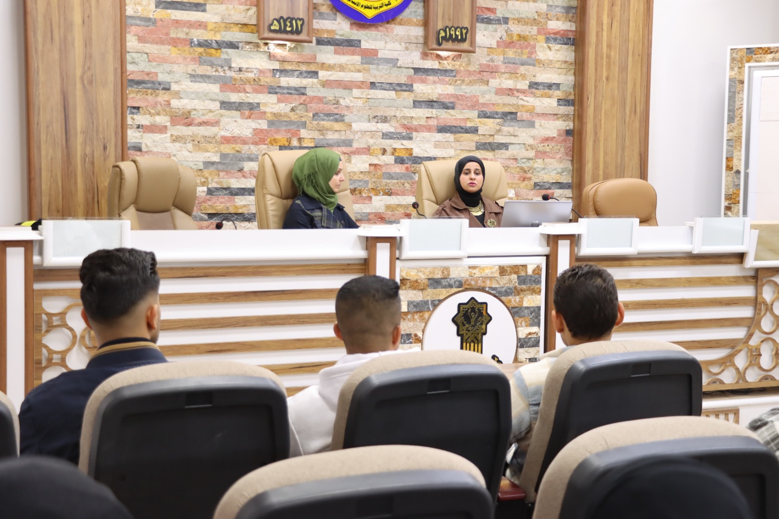 اذ تضمنت الندوة التي ادارها كل من المدرس الدكتور نور سعد حمود والمدرس المساعد منال جودي محمود ثلاثة محاور تناول المحور الاول : مكانة المرأة في المجتمع ، والمحور الثاني : تحديات تواجه المرأة في المجتمع ، والمحور الاخير : قصص نجاح امرأة. حيث تهدف الندوة إلى تسليط الضوء على مكانة المرأة في المجتمع ، والتأكيد على تعزيز دورها في شتى مجالات الحياة ، و تعريف الطالبات ان لكل قصة هناك ابطال تحدوا فيها الصعاب ونجحوا.