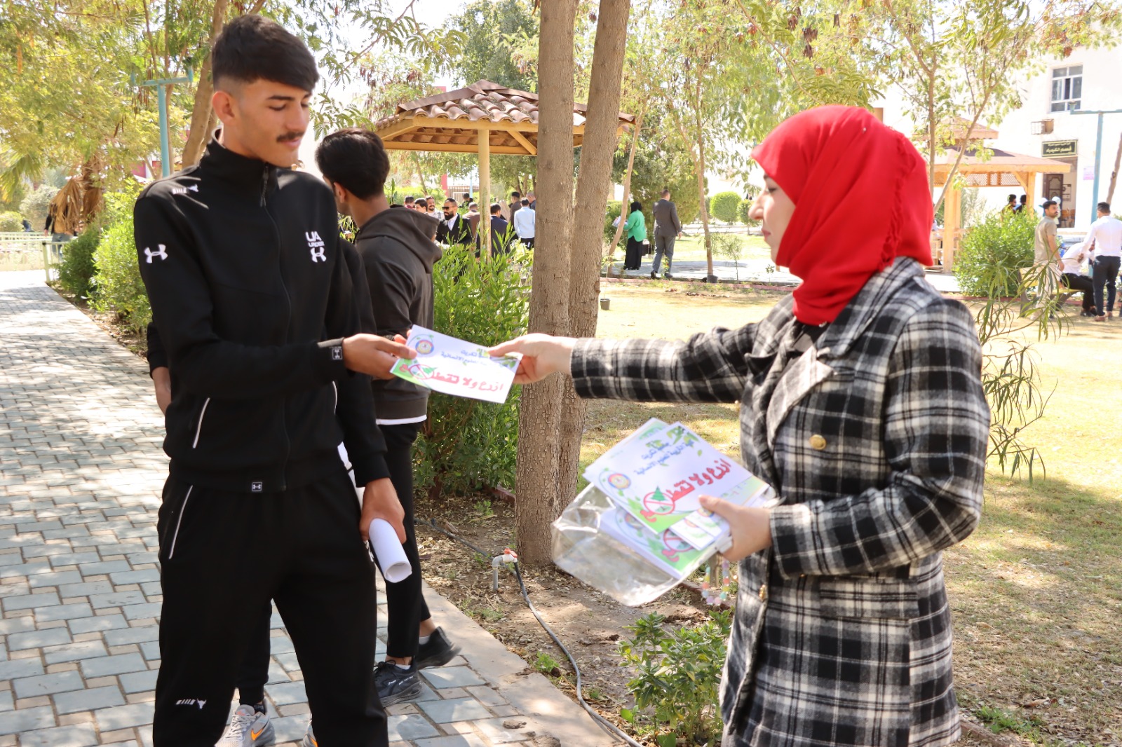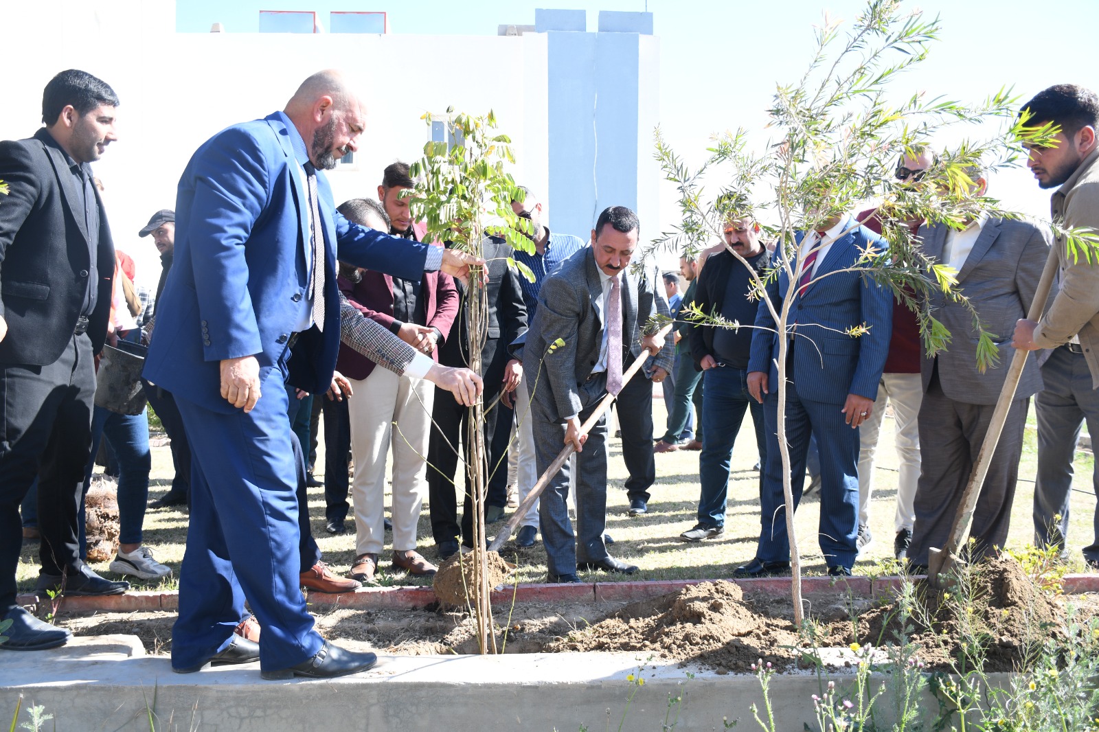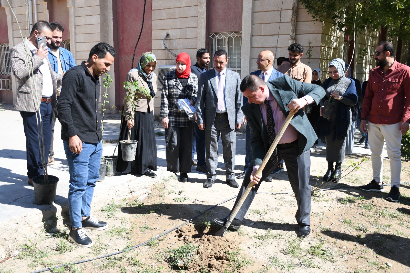 برعاية السيد رئيس جامعة تكريت الاستاذ الدكتور وعد محمود رؤوف وبإشراف السيد عميد كلية التربية للعلوم الإنسانية الاستاذ الدكتور عماد حميد احمد نظمت وحدة التشجير في كليتنا متمثلةً بالمعاون المهندس هبة مزاحم تركي حملة تشجير واسعة بمناسبة اليوم الوطني للتشجير اذ تضمنت الحملة زراعة اكثر من (٥٠٠) شتلة وشجرة مختلفة وانواع النخيل وتوزيع البوسترات التوعوية التي تحث على غرس ثقافة التشجير بين طلبة الكلية لزيادة الاهتمام بالبيئة ، بمشاركة السيد عميد الكلية الاستاذ الدكتور عماد حميد احمد والسيد معاون العميد للشؤون الإدارية الاستاذ المساعد الدكتور عادل صالح علاوي ورؤساء الاقسام والكادر الاداري والتدريسي وطلبة الكلية. اذ ان الهدف من هذه الحملة هو تعزيز روح التكافل والتعاون بين الكادر التدريسي والاداري وطلبة الكلية لبناء مجتمع اكاديمي متقارب ومتحاب ومتعاون على الخير ، ومن اجل اظهار كليتنا بابهى صورة . حيث تثمن عمادة كلية التربية للعلوم الإنسانية جهود اساتيذ وطلبة كليتنا في المشاركة بهكذا حملات تطوعية من شأنها الارتقاء بالمستوى الثقافي للطلبة وبث روح التعاون فيما بينهم راجين للجميع الموفقية والسداد في حياتهم العلمية.