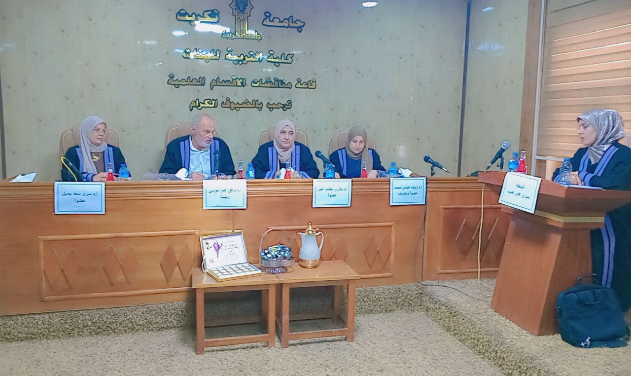 شاركت الاستاذ الدكتورة سرى اسعد جميل التدريسية في قسم العلوم التربوية والنفسية في كليتنا في عضوية لجنة مناقشة رسالة ماجستير في كلية التربية للبنات للطالبة يسرى غدار هديب ، اذ تثمن عمادة كلية التربية للعلوم الإنسانية متمثلةً بالسيد عميد الكلية الأستاذ الدكتور عماد حميد احمد جهود اساتيذها في رفع اسم كليتنا من خلال المشاركة بهكذا نشاطات علمية مثمرة.