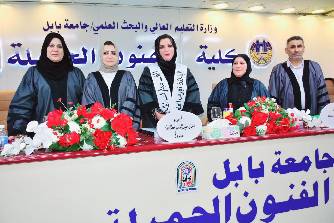 شاركت التدريسية في كلية التربية للعلوم الإنسانية قسم التربية الفنية الاستاذ المساعد الدكتورة ايمان عبدالستار عطالله في عضوية لجنة مناقشة رسالة ماجستير في جامعة بابل – كلية الفنون الجميلة للطالبة نورس اسماعيل حميد عن رسالتها الموسومة ( الابعاد النفسية للاسترقاق وتمثلاته في فن حضارة الرومان ). اذ تثمن عمادة كلية التربية للعلوم الانسانية متمثلةً بالسيد عميد الكلية الاستاذ الدكتور عماد حميد احمد جهود اساتيذها في رفع اسم كليتنا من خلال المشاركة بهكذا نشاطات علمية مثمرة.