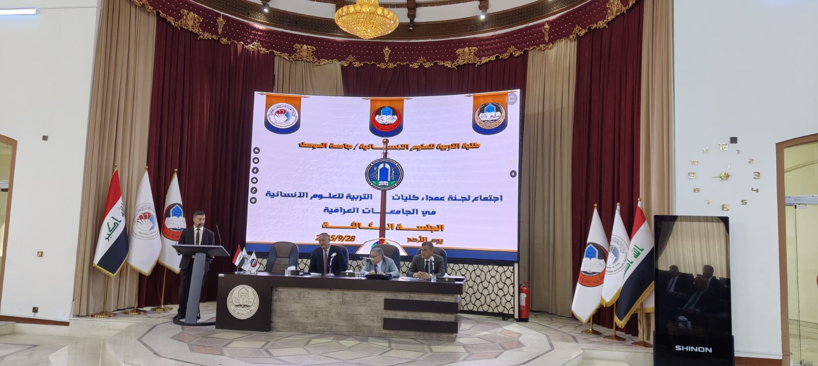 شارك السيد عميد كلية التربية للعلوم الإنسانية الاستاذ الدكتور عماد حميد احمد اليوم الأحد الموافق (٢٠٢٥/٩/٢٨) في اجتماع لجنة عمداء كليات التربية للعلوم الإنسانية في الجامعات العراقية، الذي عُقد في جامعة الموصل لمناقشة عدد من القضايا العلمية والإدارية المهمة التي تخص تطوير المناهج الدراسية وتعزيز جودة التعليم العالي في هذا التخصص.
