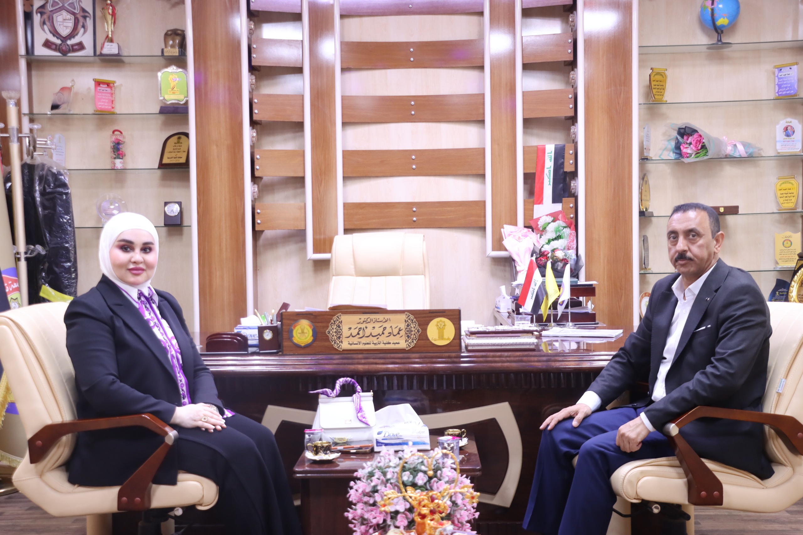 استقبل السيد عميد كلية التربية للعلوم الإنسانية الأستاذ الدكتور عماد حميد أحمد، اليوم الاثنين الموافق (٢٠٢٥/٩/٢٩)، النائب في البرلمان العراقي عن محافظة صلاح الدين الدكتورة هند محمد العباسي.