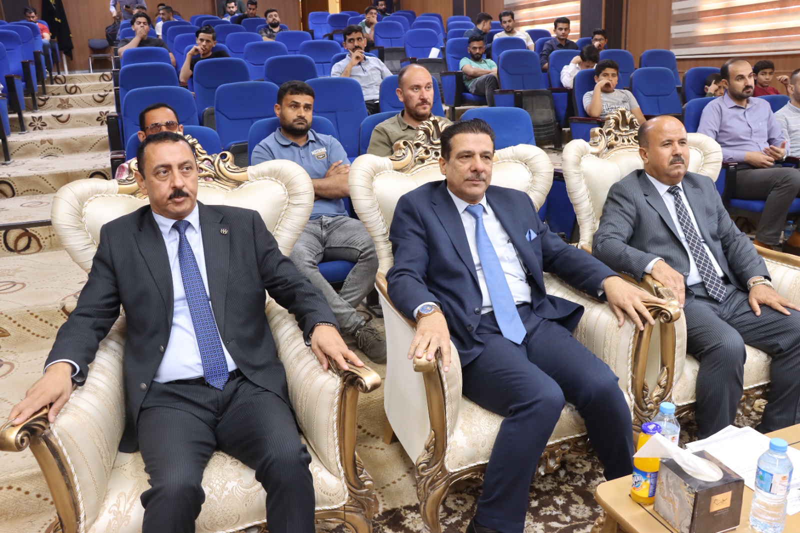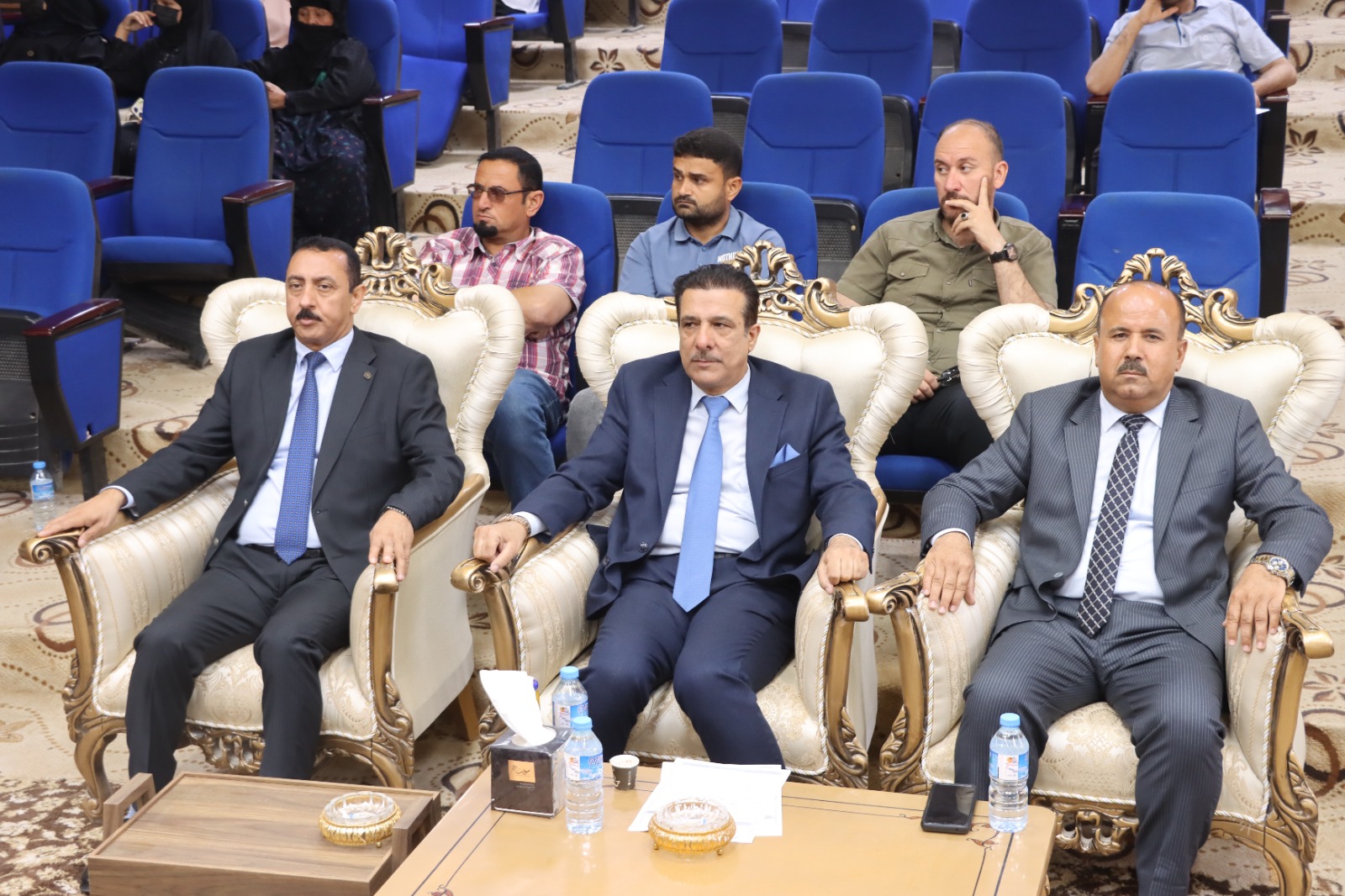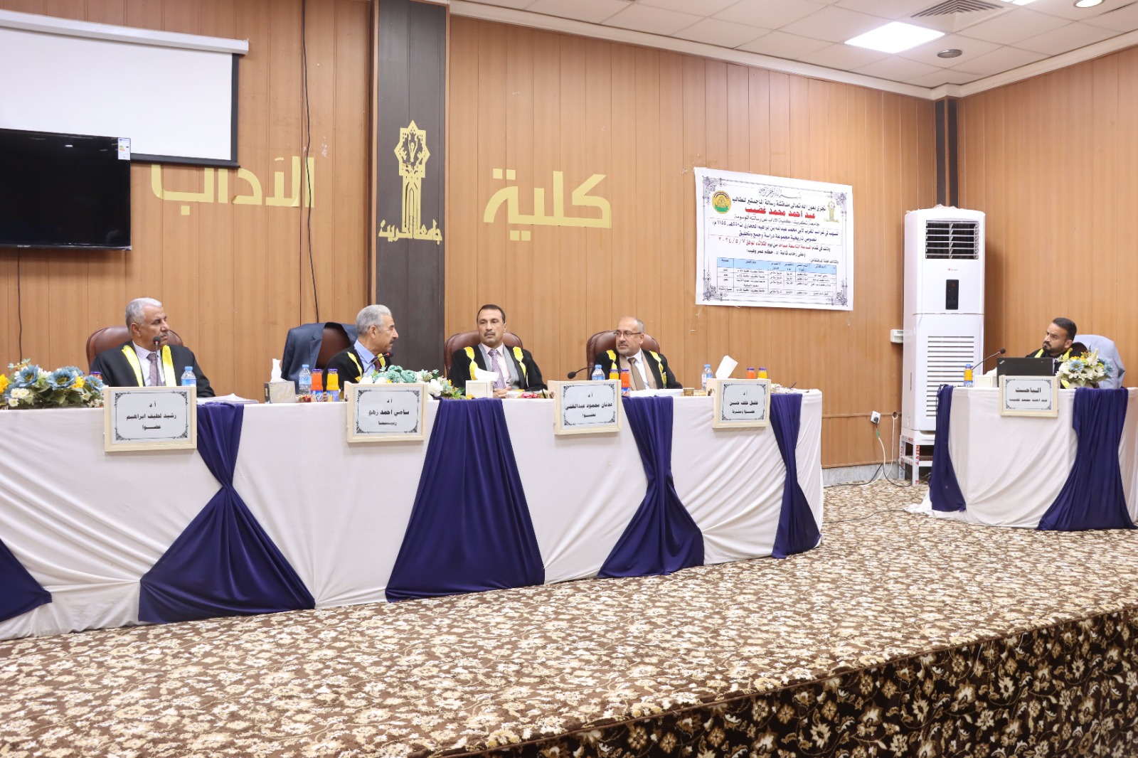 حضر السيد عميد كلية التربية للعلوم الانسانية الاستاذ الدكتور عماد حميد احمدمناقشة الطالب عبد احمد غضيب في كلية الاداب / جامعة تكريت