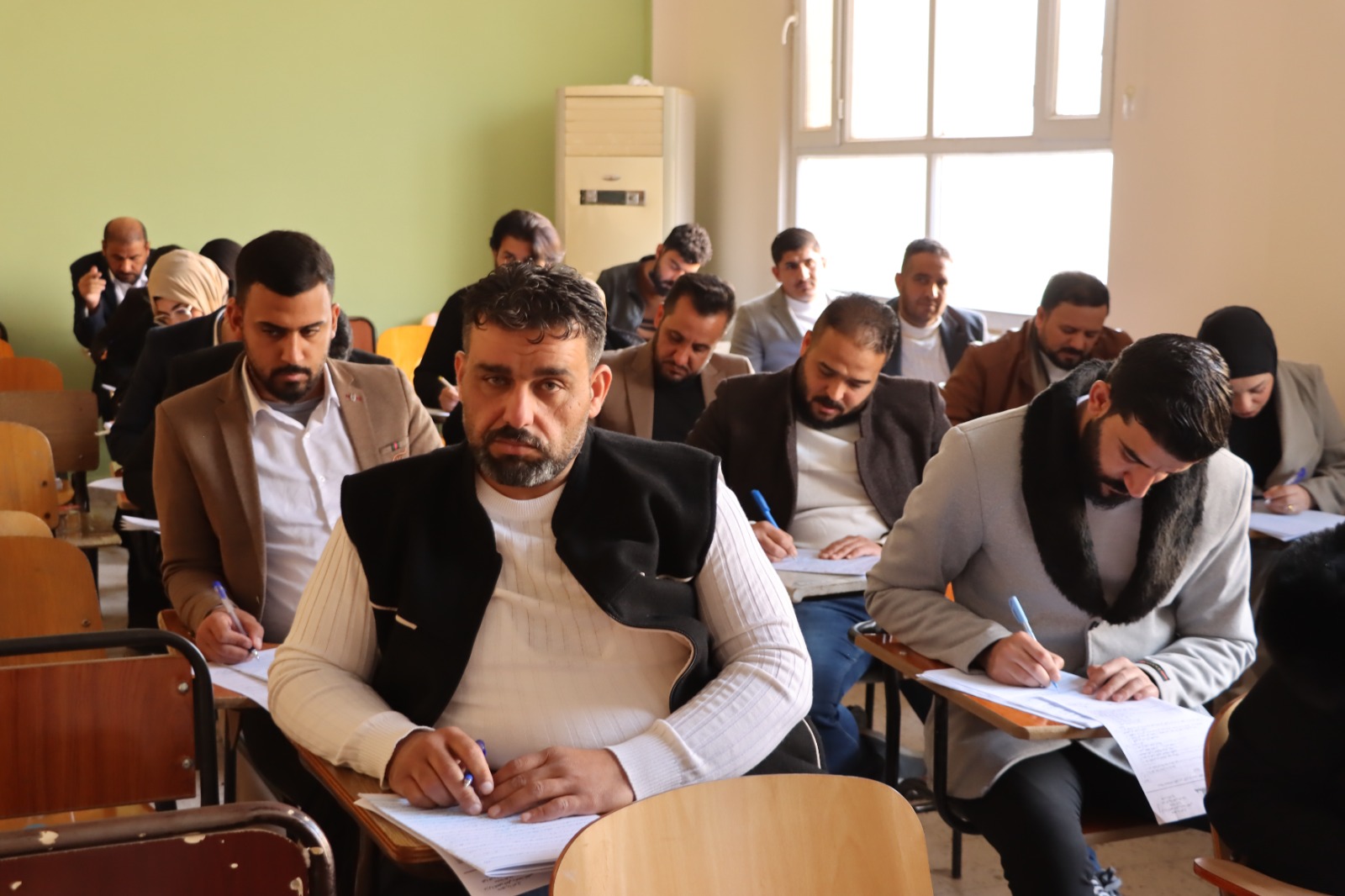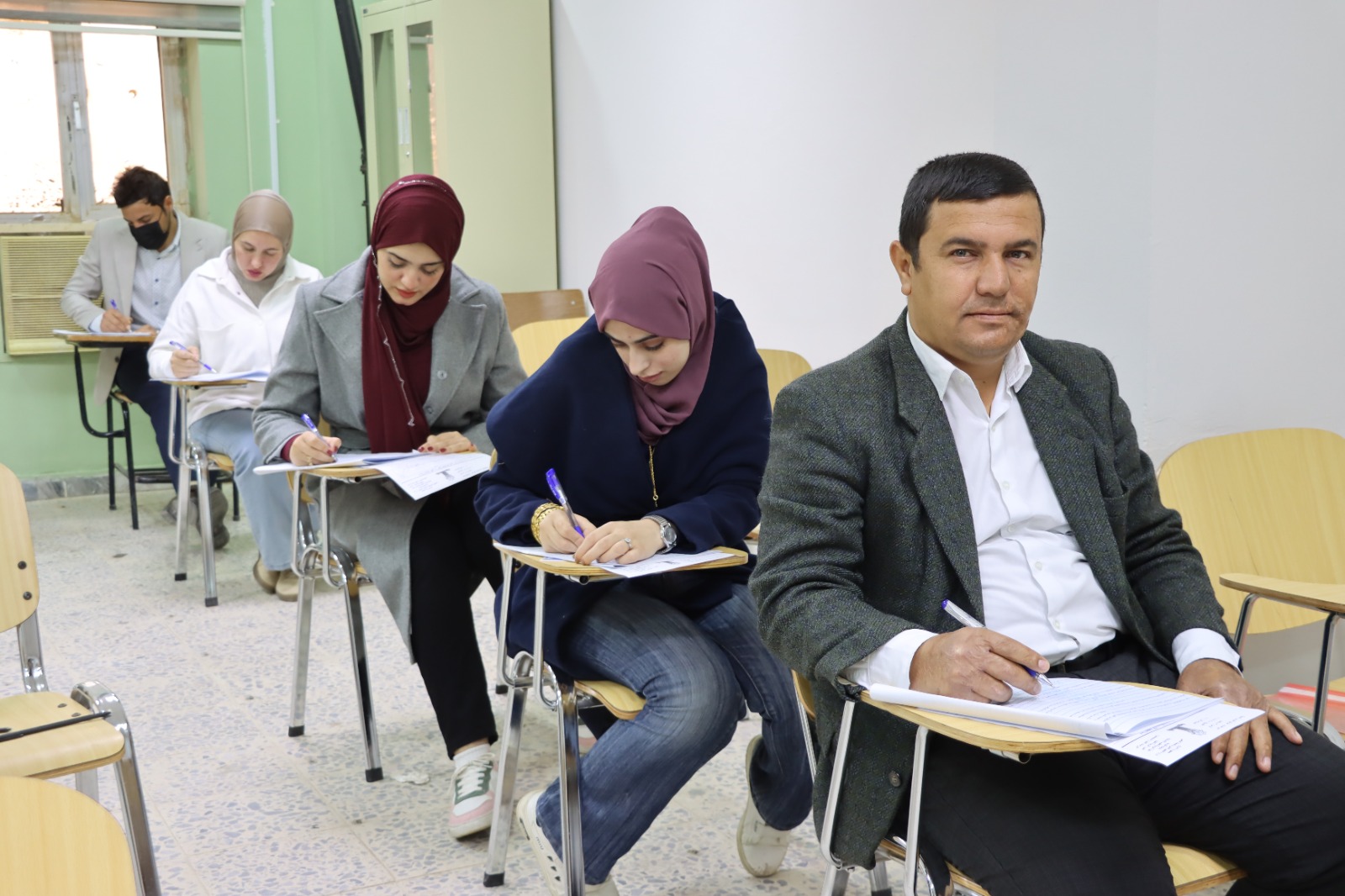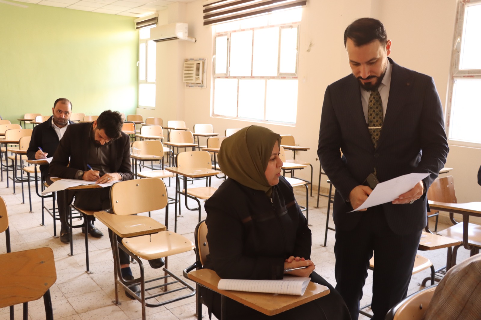 جانب من الامتحانات النهائية لطلبة الدراسات العليا (الكورس الاول) وزيارة اللجنة المركزية في رئاسة الجامعة القاعات الامتحانية