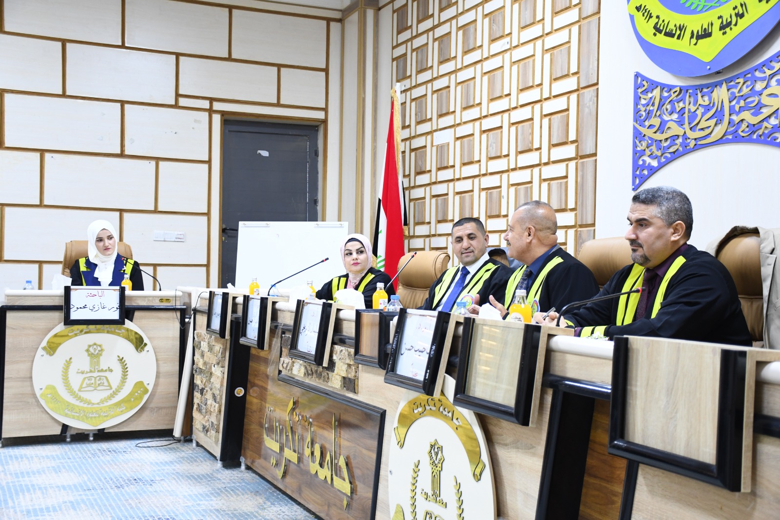 جانب من حضور السيد عميد كلية التربية للعلوم الإنسانية الاستاذ الدكتور عماد حميد احمد لمناقشة رسالة الماجستير للطالبة نور غازي من كلية الآداب